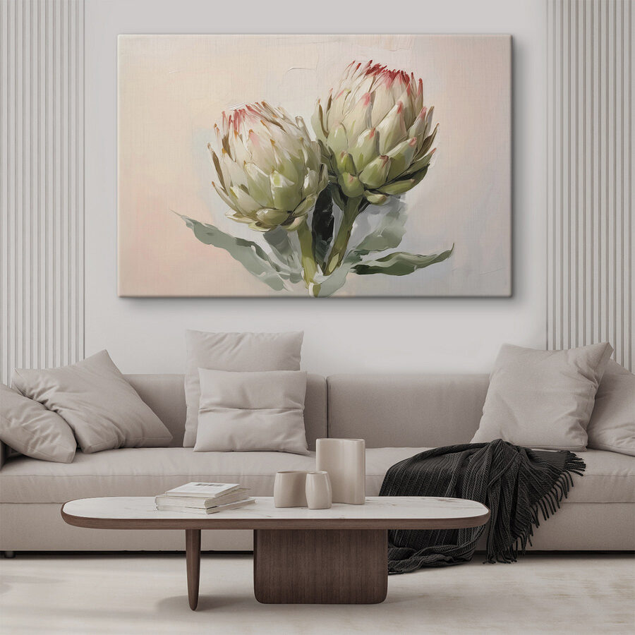 Verleihen Sie jedem Raum einen Hauch von Charme mit diesem entzückenden Leinwanddruck, der Artischocken auf einem weichen weißen Hintergrund zeigt. Es ist, als würde man sich ein kleines Stück Natur ins Haus holen, das jeden daran erinnert, dass Schönheit auch an den unerwartetsten Orten zu finden ist. Stellen Sie sich vor, Sie machen es sich in Ihrem Wohnzimmer gemütlich, trinken Tee und lassen sich von den zarten Farben dieses Kunstwerks zu Tagträumen von sonnigen Gärten und kulinarischen Abenteuern inspirieren. Es ist perfekt für alle, die einzigartige Dekoration lieben, die eine Geschichte erzählt. Außerdem sind Artischocken für ihre Herzlichkeit bekannt, was dieses Kunstwerk zu einem tollen Gesprächsanlass macht. Wer hätte gedacht, dass Gemüse so stilvoll sein kann?