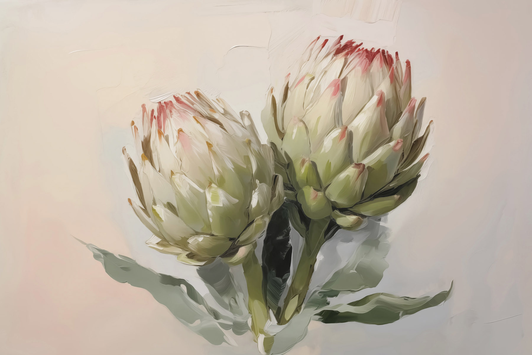Verleihen Sie jedem Raum einen Hauch von Charme mit diesem entzückenden Leinwanddruck, der Artischocken auf einem weichen weißen Hintergrund zeigt. Es ist, als würde man sich ein kleines Stück Natur ins Haus holen, das jeden daran erinnert, dass Schönheit auch an den unerwartetsten Orten zu finden ist. Stellen Sie sich vor, Sie machen es sich in Ihrem Wohnzimmer gemütlich, trinken Tee und lassen sich von den zarten Farben dieses Kunstwerks zu Tagträumen von sonnigen Gärten und kulinarischen Abenteuern inspirieren. Es ist perfekt für alle, die einzigartige Dekoration lieben, die eine Geschichte erzählt. Außerdem sind Artischocken für ihre Herzlichkeit bekannt, was dieses Kunstwerk zu einem tollen Gesprächsanlass macht. Wer hätte gedacht, dass Gemüse so stilvoll sein kann?