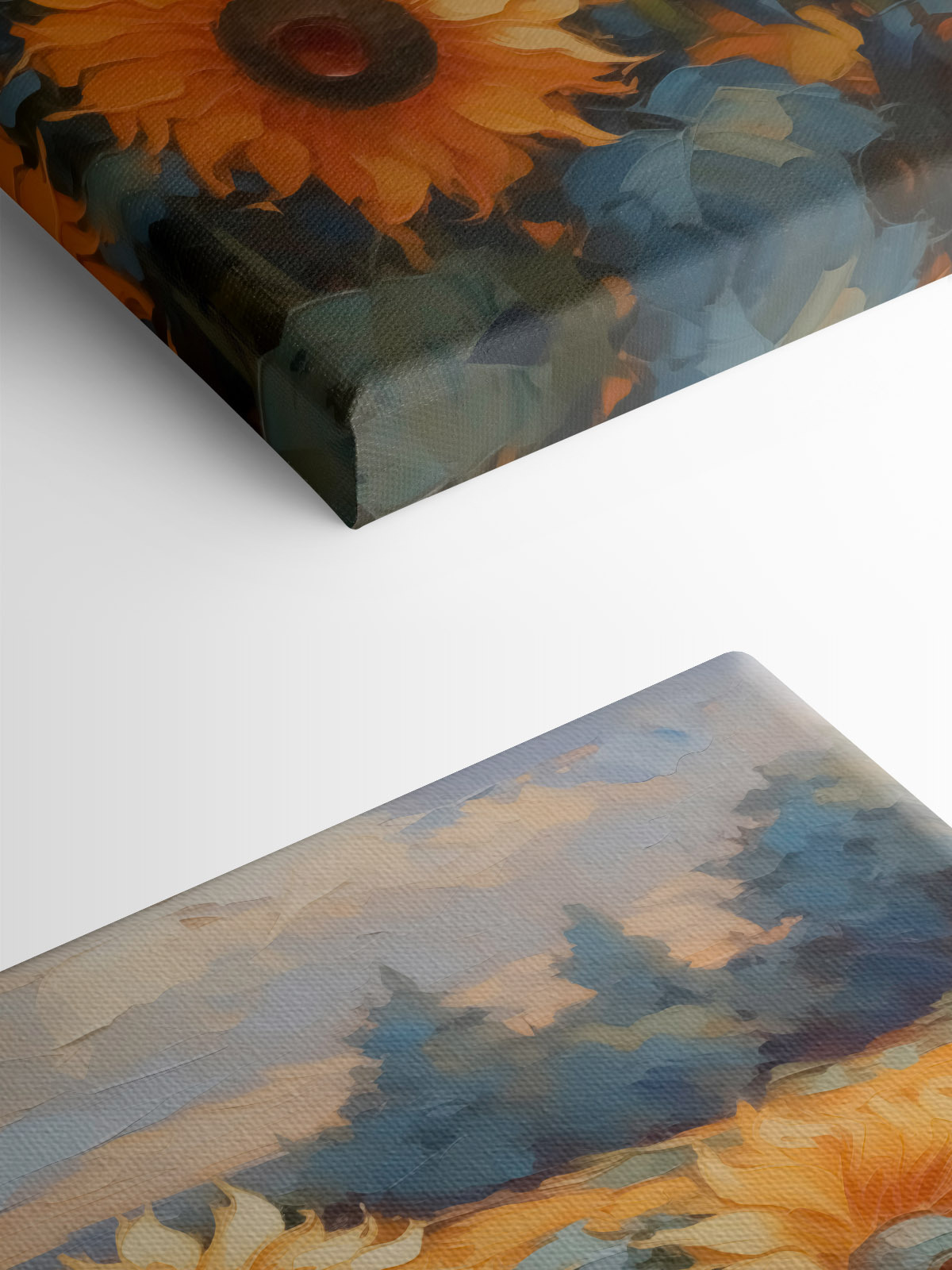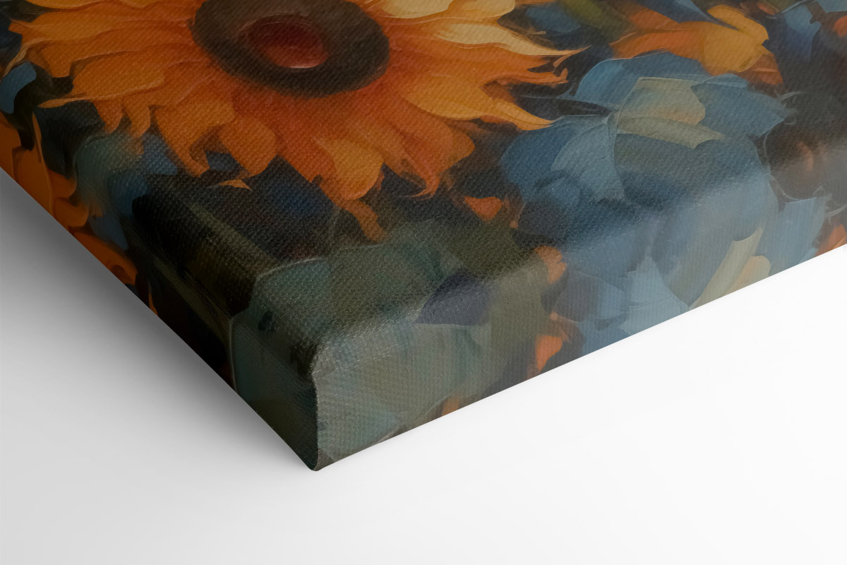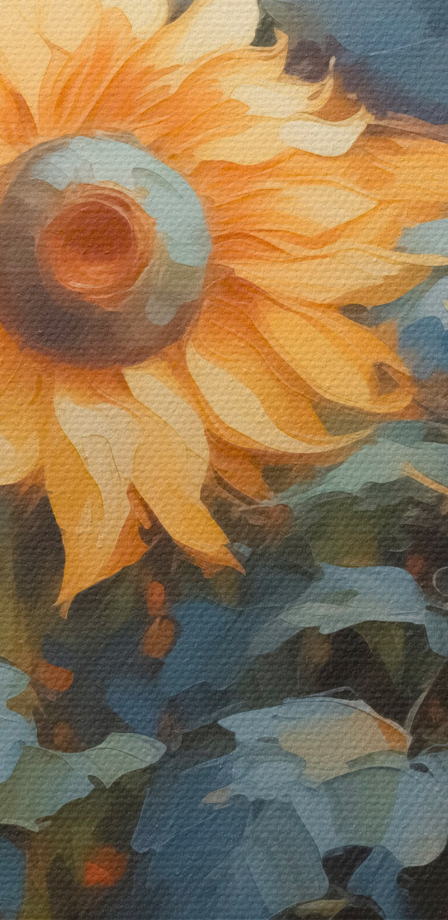 Dieser lebendige Leinwanddruck mit tanzenden Sonnenblumen in einem goldenen Feld bringt jeden Raum zum Strahlen. Es ist wie ein Ausbruch von Sonnenschein direkt an Ihrer Wand, perfekt, um Ihr Zuhause mit Wärme und Freude zu erfüllen. Stellen Sie sich vor: ein gemütlicher Morgen, ein Kaffee in der Hand, der Blick schweift zu den fröhlichen Blüten, die Sie daran erinnern, dass Schönheit überall ist. Diese Sonnenblumen scheinen direkt zurückzulächeln und machen jeden Tag ein bisschen fröhlicher. Ob im Wohnzimmer oder in einer fröhlichen Ecke, dieses Stück bringt gute Laune und ein Stück Natur nach drinnen – ganz ohne Gießen.