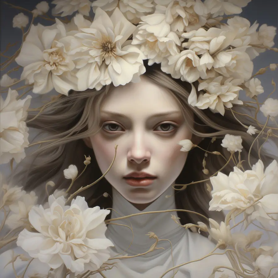 Dieser bezaubernde Leinwanddruck, der eine Frau mit einer Blumenkrone zeigt, verleiht jedem Raum ein neues Gesicht. Die Mischung aus sanften Farben und zarten Blüten verleiht Ihrem Raum einen Hauch von Anmut und Laune. Stellen Sie sich vor, Sie gehen daran vorbei und fühlen sich ein wenig beschwingt, als würde die Natur direkt in Ihrem Wohnzimmer süße Töne flüstern. Dieses Kunstwerk eignet sich perfekt für eine gemütliche Ecke oder als Statement-Stück und verbreitet eine ruhige Stimmung, die Sie einfach innehalten und durchatmen lässt. Es ist wie ein kleiner Garten, der in ein Porträt eingewickelt ist – bereit, einen Hauch von Magie in Ihr Zuhause zu bringen.