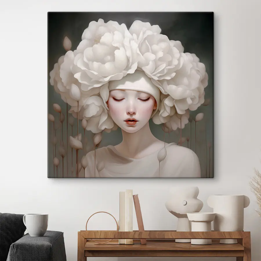 Verwandeln Sie Ihren Raum mit diesem bezaubernden Leinwandbild, das eine heitere Frau mit wunderschönen weißen Blumen zeigt. Es ist nicht nur eine Dekoration, sondern eine Einladung zum Innehalten und Durchatmen. Stellen Sie sich vor, wie das sanfte Flüstern der Natur in jedem Blütenblatt eingefangen wird und mühelos mit Ihrer gemütlichen Ecke verschmilzt. Dieses Stück verspricht einen Hauch von Ruhe und Charme und ist damit der perfekte Begleiter für eine ruhige Leseecke oder ein lebendiges Wohnzimmer. Vielleicht bleiben Ihre Freunde einfach stehen und bewundern es und fragen sich, ob Sie einen heimlichen Künstlerfreund haben. Hängen Sie es auf und beobachten Sie, wie sich die Magie entfaltet!