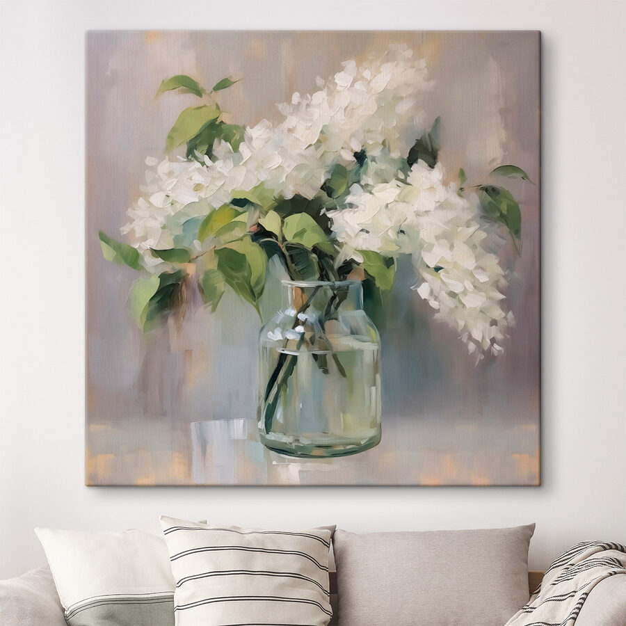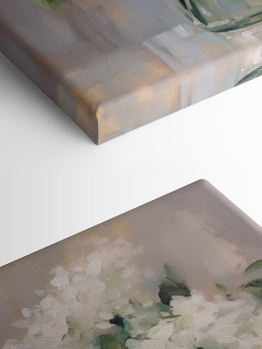 Stellen Sie sich eine gemütliche Ecke in Ihrem Zuhause vor, in der dieser hübsche Leinwanddruck die Atmosphäre aufhellen kann. Ein Strauß weißer Blumen in einem schlichten Glasgefäß ist die perfekte Mischung aus Frische und Beruhigung. Stellen Sie sich vor, wie es an der Wand hängt – und sofortigen Charme versprüht! Es strahlt Eleganz aus, ohne sich zu sehr anzustrengen, so wie die Freundin, die immer gut gekleidet aussieht, es aber mühelos schafft. Dieses geblümte Stück ist nicht nur eine Zierde, sondern bringt Wärme in jeden Raum. Spüren Sie die Ruhe, die Sie überkommt, wenn Sie an Ihrem Kaffee nippen und diese friedlichen Blüten betrachten. Wer möchte diese Stimmung nicht haben?