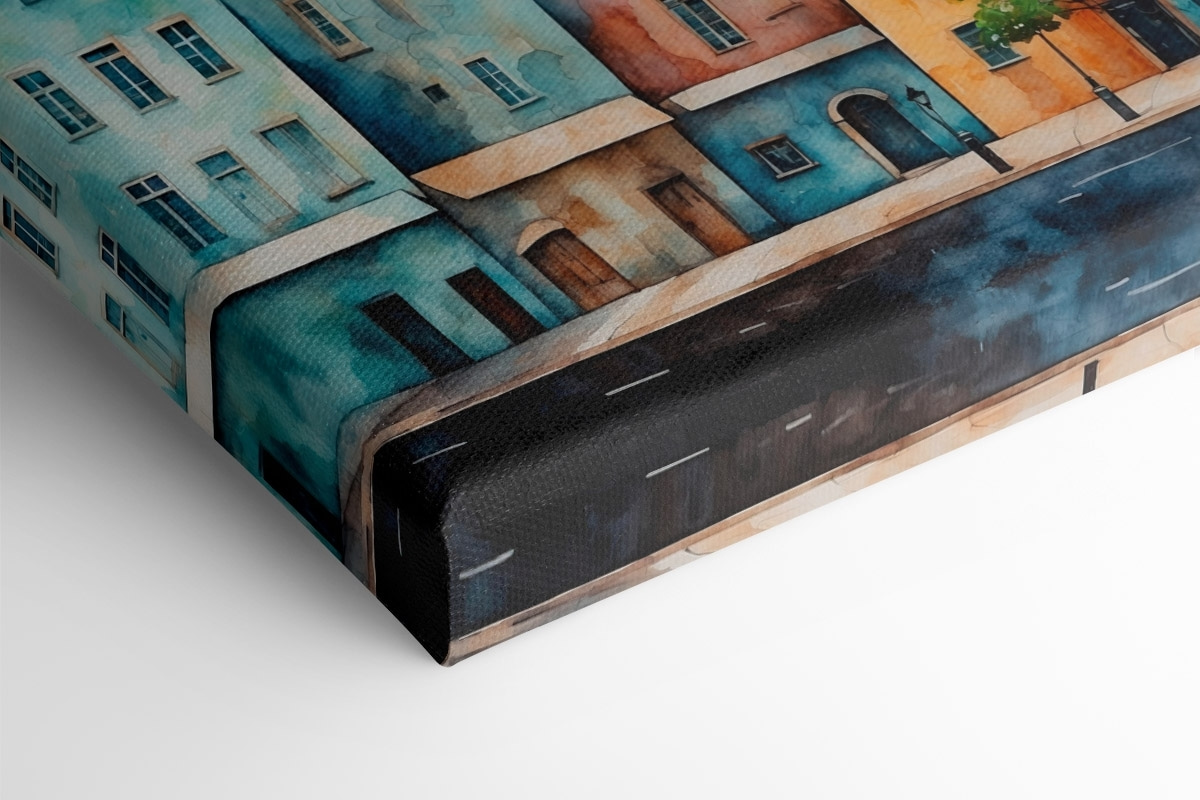 Gestalten Sie Ihren Raum mit diesem bezaubernden Aquarell, das eine reizvolle Reihe von Gebäuden zeigt. Es ist wie ein Mini-Urlaub direkt an Ihrer Wand – die verspielten Farben und weichen Pinselstriche lassen Sie fast die sanfte Brise einer geschäftigen Stadt spüren. Stellen Sie sich vor, Sie stehen vor dieser Szene, eine warme Tasse Kaffee in der Hand, während das Sonnenlicht durch Ihr Fenster strömt. Jeder Blick entfacht Tagträume von einem Spaziergang durch die lebhaften Straßen. Dieses Stück eignet sich perfekt für gemütliche Ecken oder ein helles Wohnzimmer und bringt einen Hauch von Laune und Geschichte in jedes Zuhause. Egal, ob Sie Freunde empfangen oder stille Momente genießen, es wird Ihnen jedes Mal ein Lächeln ins Gesicht zaubern.
