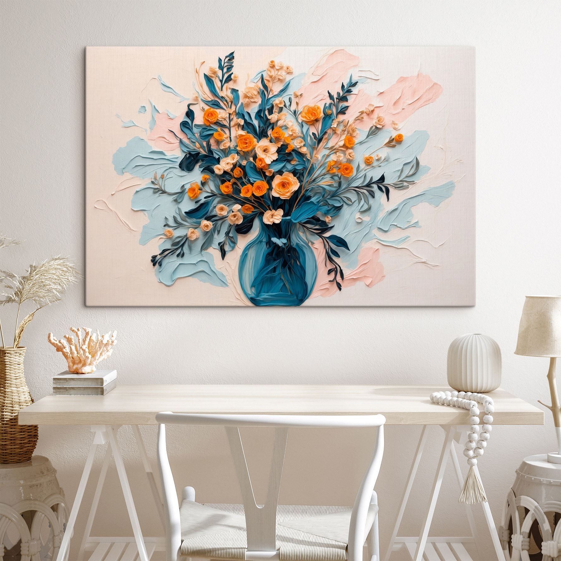 Dieses farbenfrohe Leinwandbild mit einem herrlichen Blumenstrauß in einer Vase verschönert jeden Raum. Es ist, als hätte man einen Hauch von Frühling direkt an der Wand, ohne dass man eine Gießkanne braucht! Stellen Sie sich vor, wie diese Schönheit Sie jeden Morgen begrüßt und eine fröhliche Note in Ihre Kaffeeroutine bringt. Die lebendigen Farben heben sich von einem dezenten Hintergrund ab und passen so perfekt in jeden Raum – ins Wohnzimmer, ins Schlafzimmer oder sogar in eine Ecke, die ein bisschen Haltung zeigt. Diese Blumenkunst dekoriert nicht nur, sie bringt auch ein wenig Lachen und Wärme und lädt jeden ein, innezuhalten und an den Rosen zu riechen, auch wenn sie nicht echt sind. Perfekt, um die Stimmung an einem trüben Tag zu heben!