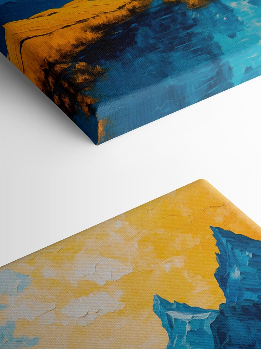 Stellen Sie sich vor, Sie betreten Ihr Wohnzimmer und werden von einem atemberaubenden Gemälde begrüßt, das die Natur ins Haus holt – wie ein kleiner Urlaub jeden Tag. Dieses bezaubernde Gemälde eines Flusses, der sich durch majestätische Berge und goldenes Gras schlängelt, erinnert an einen ruhigen Moment fernab vom Alltag. Die leuchtenden Blautöne und warmen Gelbtöne erzeugen einen Tanz der Farben, der selbst die trübsten Tage aufhellen kann. Stellen Sie sich vor, wie Sie sich mit einer Tasse Tee in der Hand auf der Couch entspannen, während dieses Meisterwerk Geschichten über die Schönheit der Natur flüstert. Es ist die perfekte Ergänzung für jeden, der sich nach einem kleinen Abenteuer zu Hause sehnt. Wer möchte nicht, dass sich sein Raum wie ein gemütlicher Rückzugsort anfühlt?