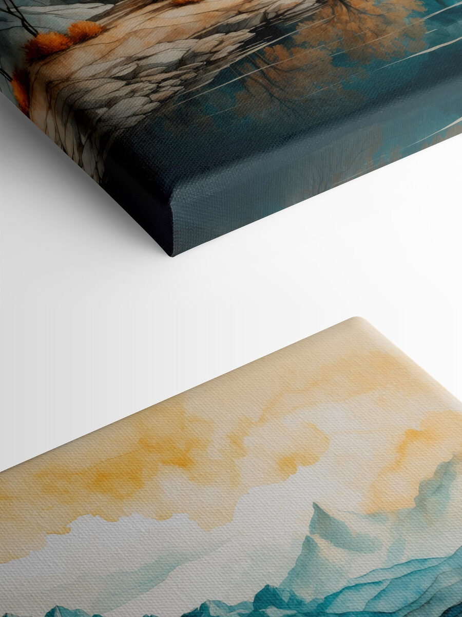 Verwandeln Sie mit diesem Aquarell jede Wand in eine verträumte Oase. Stellen Sie sich vor, Sie versinken in einer ruhigen Seeszene, in der leuchtende Herbstbäume mit dem kristallklaren blauen Wasser flirten. Und die Berge im Hintergrund? Sie flüstern praktisch die süßen Geheimnisse der Natur. Stellen Sie sich das Bild in einem gemütlichen Wohnzimmer oder einem sonnenbeschienenen Flur vor, wo es Wärme erzeugt und zum Lächeln einlädt. Es ist, als hätte man ein Stückchen Natur im Haus, nur ohne die Mücken. Diese Leinwand ist perfekt für Tagträumer und Abenteurer, denn sie ist die Art von Dekoration, die sich einfach gut anfühlt.