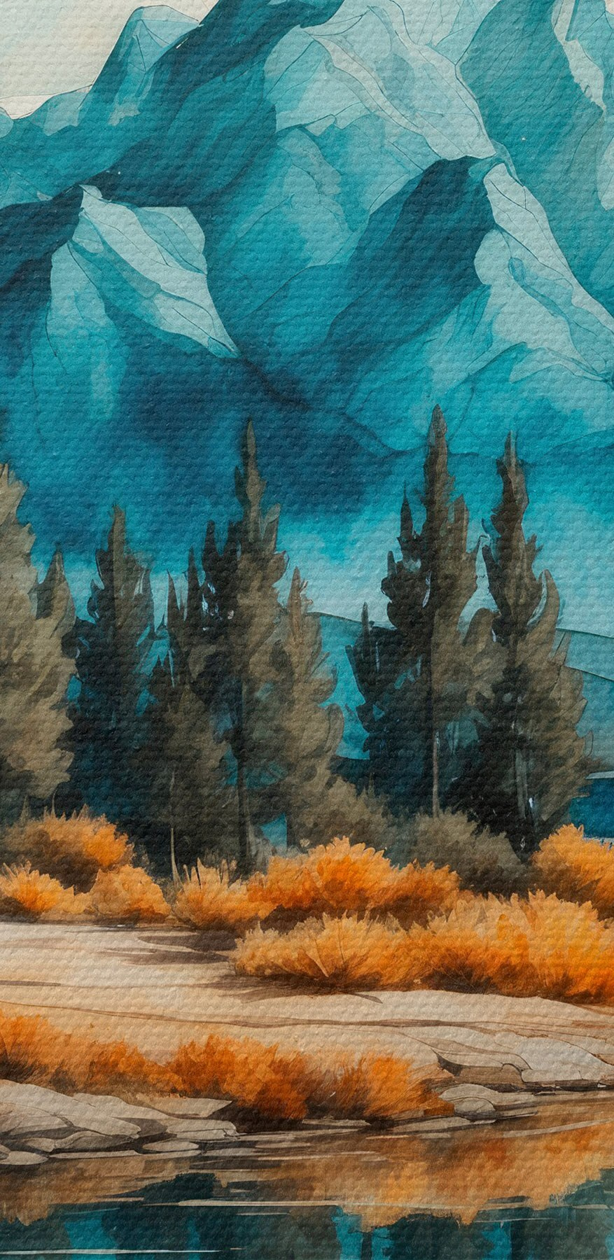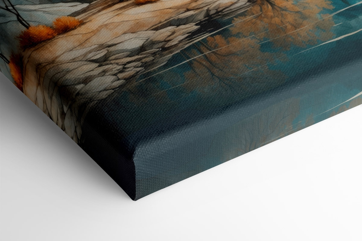 Verwandeln Sie mit diesem Aquarell jede Wand in eine verträumte Oase. Stellen Sie sich vor, Sie versinken in einer ruhigen Seeszene, in der leuchtende Herbstbäume mit dem kristallklaren blauen Wasser flirten. Und die Berge im Hintergrund? Sie flüstern praktisch die süßen Geheimnisse der Natur. Stellen Sie sich das Bild in einem gemütlichen Wohnzimmer oder einem sonnenbeschienenen Flur vor, wo es Wärme erzeugt und zum Lächeln einlädt. Es ist, als hätte man ein Stückchen Natur im Haus, nur ohne die Mücken. Diese Leinwand ist perfekt für Tagträumer und Abenteurer, denn sie ist die Art von Dekoration, die sich einfach gut anfühlt.