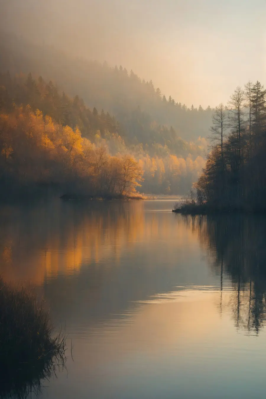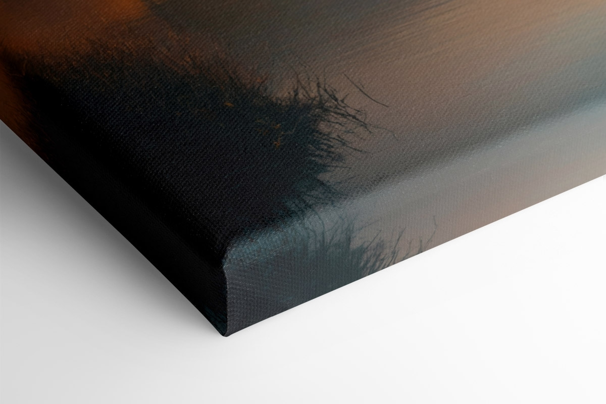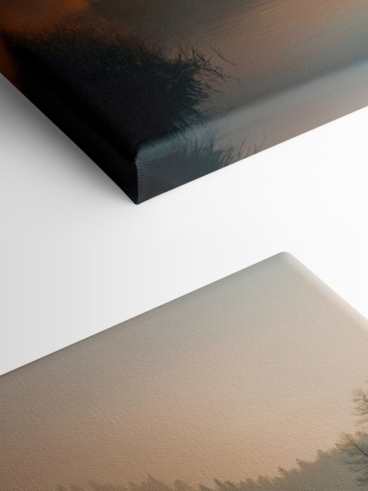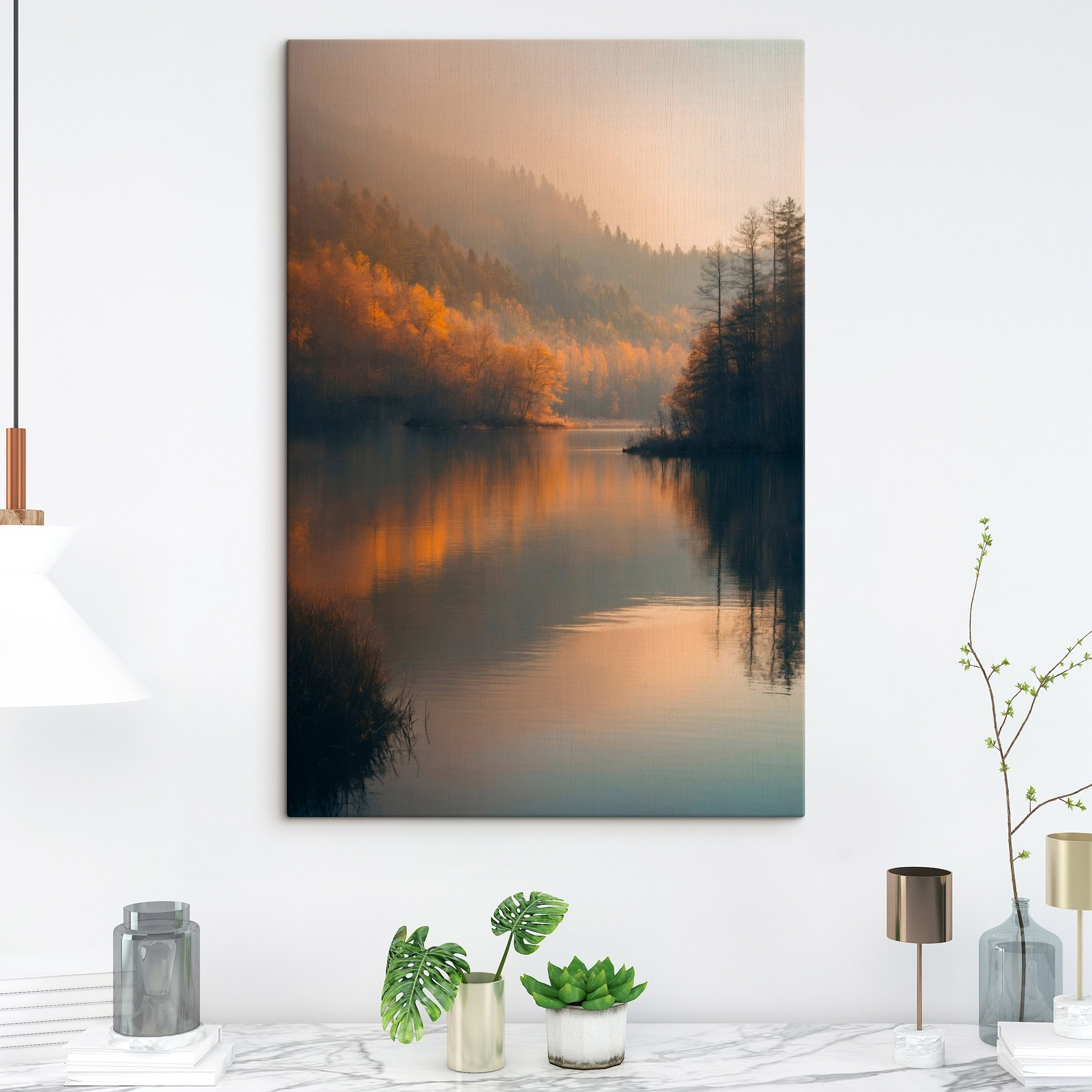 Stellen Sie sich vor: ein ruhiger See, umrahmt von flüsternden Bäumen und majestätischen Bergen, als hätte die Natur ein Meisterwerk nur für Sie gemalt. Dieser Leinwanddruck hängt nicht nur an der Wand, sondern lädt Sie ein, tief durchzuatmen und die Ruhe auf sich wirken zu lassen. Das warme Licht des Sonnenuntergangs tanzt auf dem Wasser und macht es schwer, nicht von faulen Nachmittagen am Flussufer zu träumen. Perfekt für eine gemütliche Sitzecke oder ein Wohnzimmer, das sich nach einem Hauch von Natur sehnt. Es ist, als würde man sich ein Stückchen Ruhe ins Haus holen. Wer würde sich das nicht wünschen?
