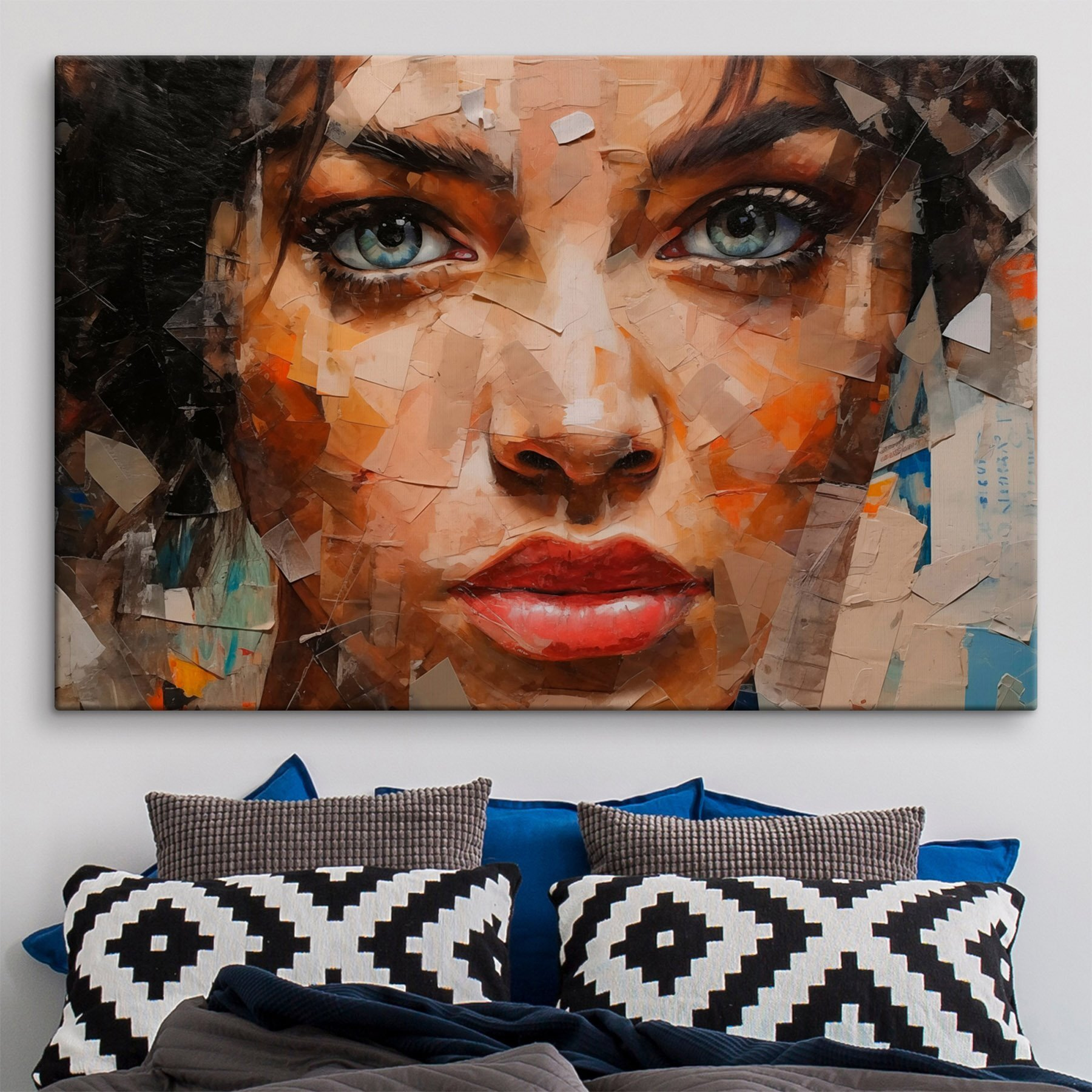 Gestalten Sie Ihren Raum mit diesem fesselnden Leinwandbild, das den gefühlvollen Blick einer Frau zeigt. Es scheint, als ob sie bereit ist, ein Geheimnis zu teilen oder den neuesten Tee zu verschütten. Die satten Farben und die mehrschichtigen Strukturen laden dazu ein, das Kunstwerk näher zu betrachten, fast so, als ob es lebendig wäre. Stellen Sie sich vor, wie diese Schönheit in einer gemütlichen Ecke hängt, zu Gesprächen anregt oder einfach nur einen eindrucksvollen Hintergrund für Ihr tägliches Leben bildet. Perfekt für ein Wohnzimmer, einen Flur oder eine besondere Ecke, in der man sich inspirieren lassen kann. Es ist nicht nur Dekoration, es ist ein Erlebnis, das sich entfalten kann.