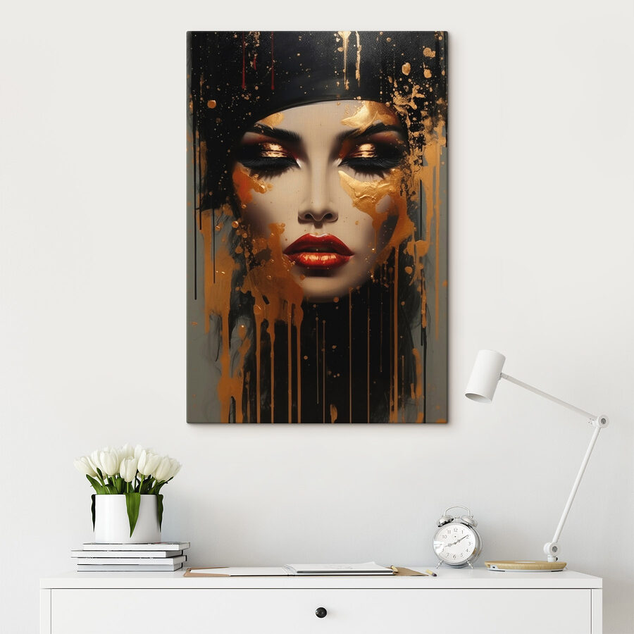 Treten Sie ein in eine Welt, in der Kunst und Mysterium aufeinanderprallen, perfekt in Szene gesetzt in diesem lebendigen Leinwanddruck. “Geheimnisvolle Schönheit mit künstlerischem Flair” wertet jeden Raum auf, lädt zu neugierigen Blicken ein und regt zu Gesprächen an. Stellen Sie sich vor, es in einer gemütlichen Ecke aufzuhängen, in der sich Freunde auf eine Tasse Kaffee treffen und nicht anders können, als seine beeindruckende Präsenz zu bewundern. Mit seinen kräftigen Farben und seinem ausdrucksstarken Gesicht weckt es Emotionen und hinterlässt ein Gefühl der Faszination. Perfekt für alle, die einen Hauch von Flair zu schätzen wissen. Es ist, als hätte man einen fesselnden Freund an der Wand, der im Stillen Geschichten erzählt und die Kreativität im Raum inspiriert.
