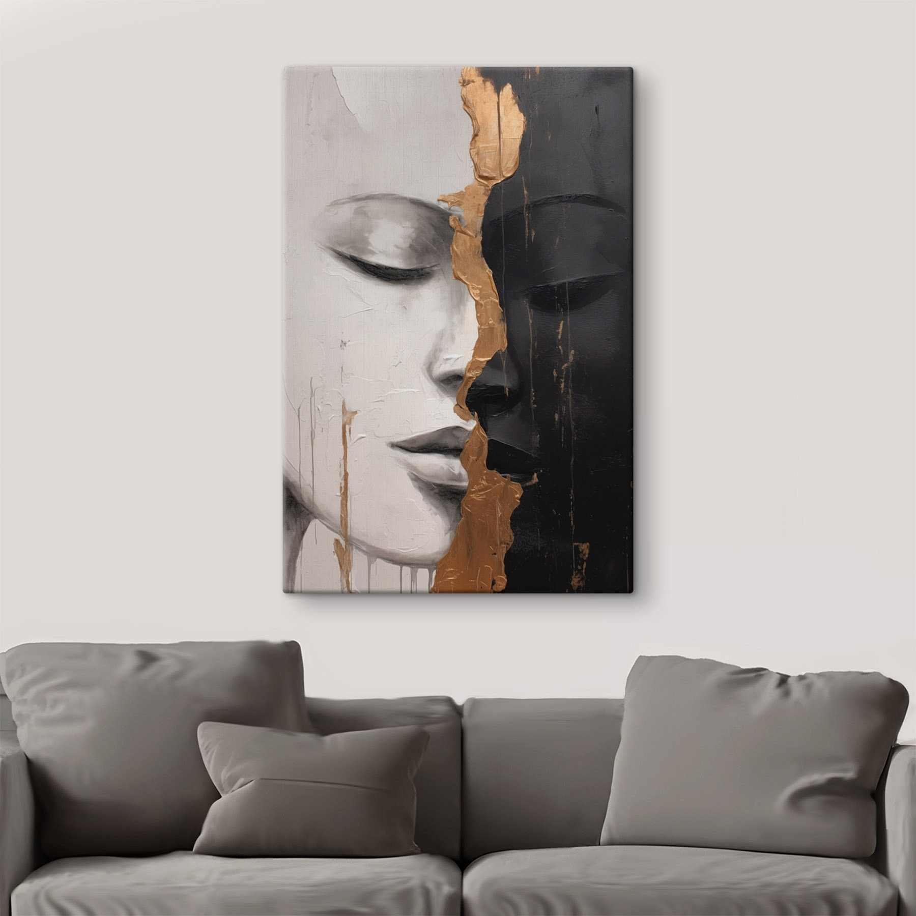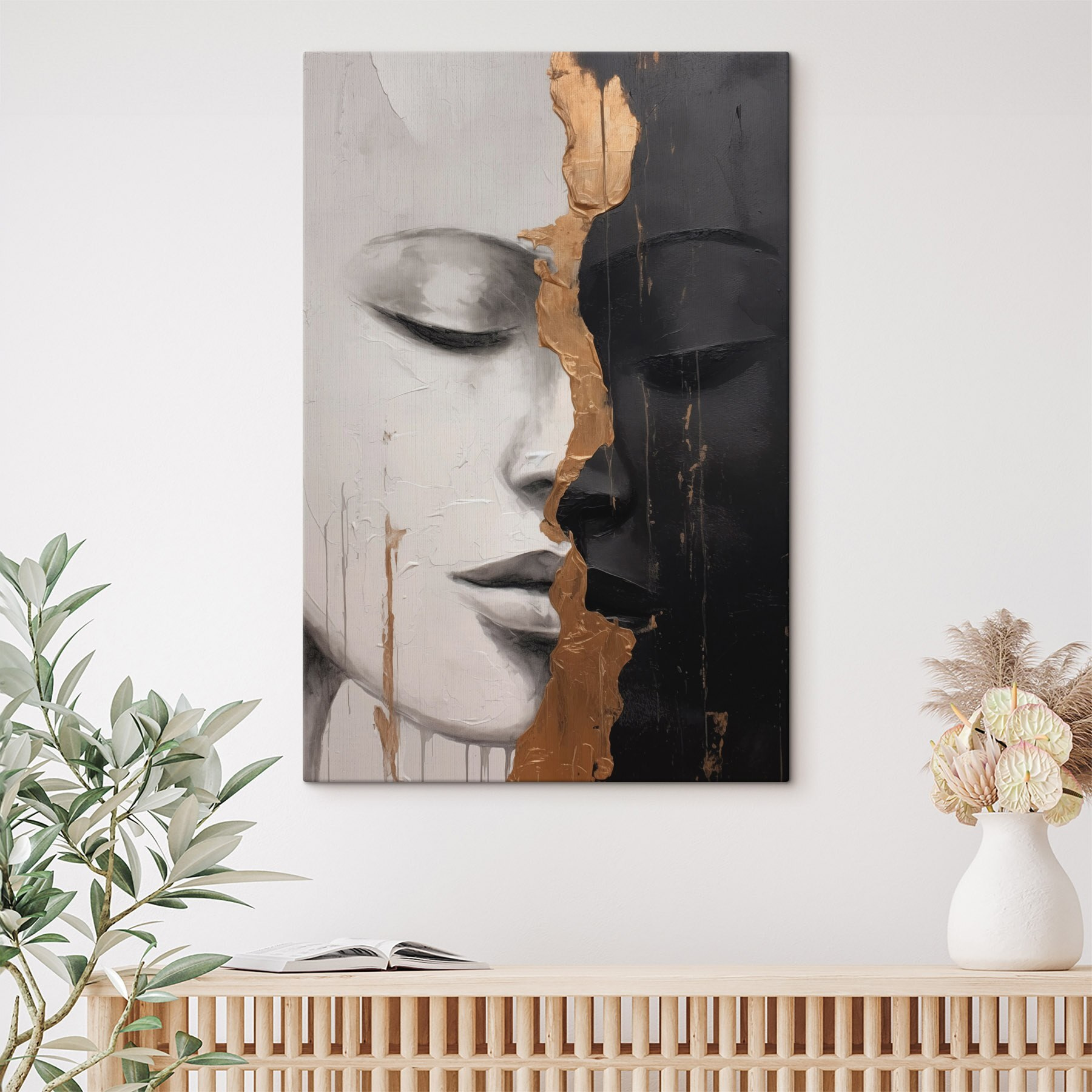 Treten Sie ein in eine Welt, in der die Identitäten in einem eindrucksvollen Tanz der Kontraste verschmelzen. Der Leinwanddruck “Eloquent Contrast of Masked Identities” lädt mit seinem kühnen Wechselspiel von Licht und Schatten zum Nachdenken ein. Stellen Sie sich dieses Bild in einem gemütlichen Wohnzimmer vor, wo die Gäste über die Geschichten hinter den Gesichtern nachdenken können. Es ist wie ein Gesprächsstarter, der keine Worte braucht – eine perfekte Kulisse für Lachen oder ruhige Momente. Dieses Kunstwerk sieht nicht nur hübsch aus, es flüstert auch Geheimnisse der Einheit und Vielfalt aus und ist damit eine herzliche Ergänzung für jeden Raum.