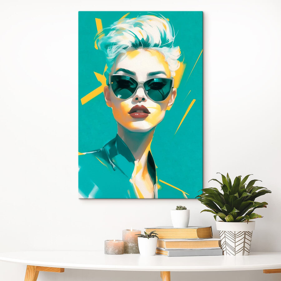 Dieser lebendige Leinwanddruck mit einer stilvollen Frau mit Sonnenbrille und grünem Hemd bringt jeden Raum zum Strahlen. Es fängt die Essenz eines sonnigen Tages ein – voller Frechheit und mit einem Hauch von Geheimnis. Hängen Sie es über eine gemütliche Leseecke oder den Essbereich, um Konversationen anzuregen. Stellen Sie sich vor, ein Freund kommt vorbei und ist sofort von ihrem selbstbewussten Blick fasziniert. Es ist nicht nur Dekoration, es ist ein Statement. Jeder Blick kann sich wie eine kleine Flucht anfühlen, eine Erinnerung an die Sommerstimmung, selbst mitten im Winter. Machen Sie sich den Charme zu eigen und lassen Sie Ihre Wände für sich sprechen!