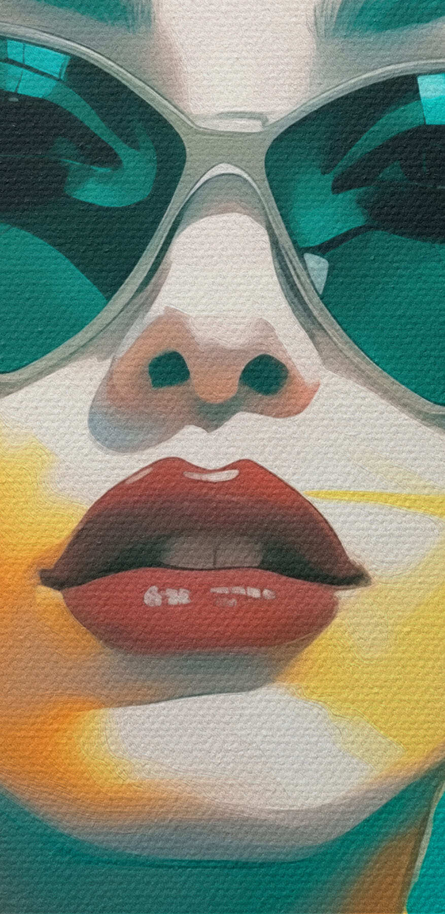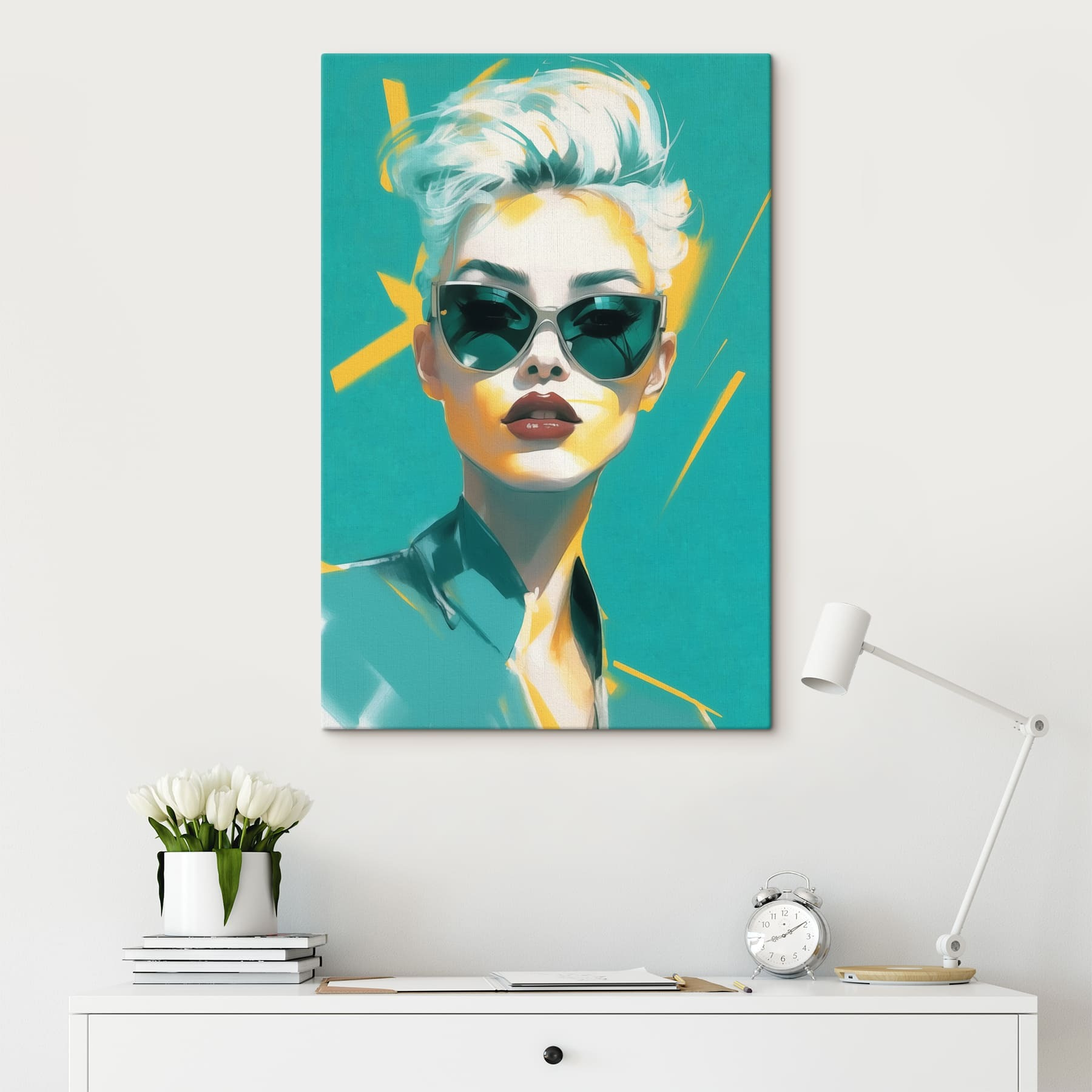 Dieser lebendige Leinwanddruck mit einer stilvollen Frau mit Sonnenbrille und grünem Hemd bringt jeden Raum zum Strahlen. Es fängt die Essenz eines sonnigen Tages ein – voller Frechheit und mit einem Hauch von Geheimnis. Hängen Sie es über eine gemütliche Leseecke oder den Essbereich, um Konversationen anzuregen. Stellen Sie sich vor, ein Freund kommt vorbei und ist sofort von ihrem selbstbewussten Blick fasziniert. Es ist nicht nur Dekoration, es ist ein Statement. Jeder Blick kann sich wie eine kleine Flucht anfühlen, eine Erinnerung an die Sommerstimmung, selbst mitten im Winter. Machen Sie sich den Charme zu eigen und lassen Sie Ihre Wände für sich sprechen!