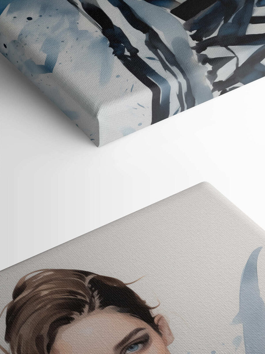 Tauchen Sie ein in die Welt des Stils mit diesem fesselnden Leinwanddruck, der eine Frau in einer kühn gestreiften Jacke zeigt. Die Mischung aus Blau- und Schwarztönen wirkt schick und geheimnisvoll zugleich. Stellen Sie sich vor, dieses Bild in einer gemütlichen Leseecke oder einem stilvollen Büro aufzuhängen – genau das Richtige, um ein Gespräch zu entfachen! Es ist, als würde eine persönliche Fashionista über Ihren Raum wachen und Sie jeden Tag zu einem Hauch von Glamour inspirieren. Die Art und Weise, wie diese Farben miteinander tanzen, könnte sogar zu einer spontanen Tanzparty direkt im Wohnzimmer anregen. Wer weiß? Dieses Kunstwerk könnte der Grund für diese spontane Jamsession sein! Perfekt für alle, die es lieben, Raffinesse mit einer Prise Spaß zu verbinden.