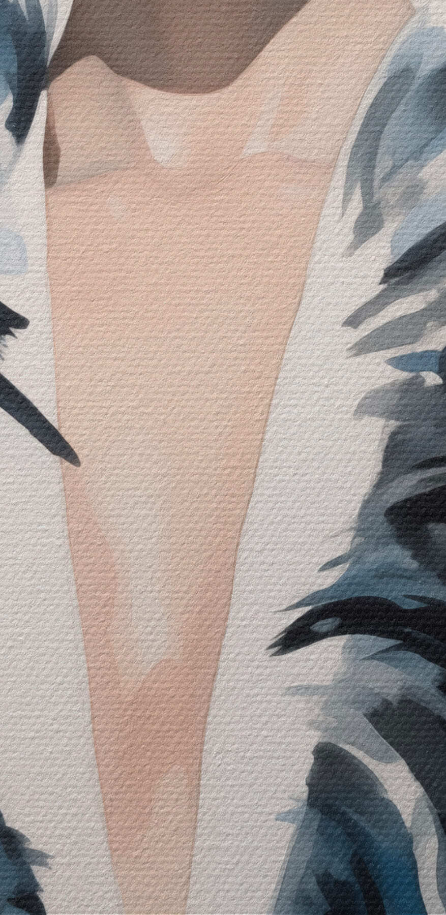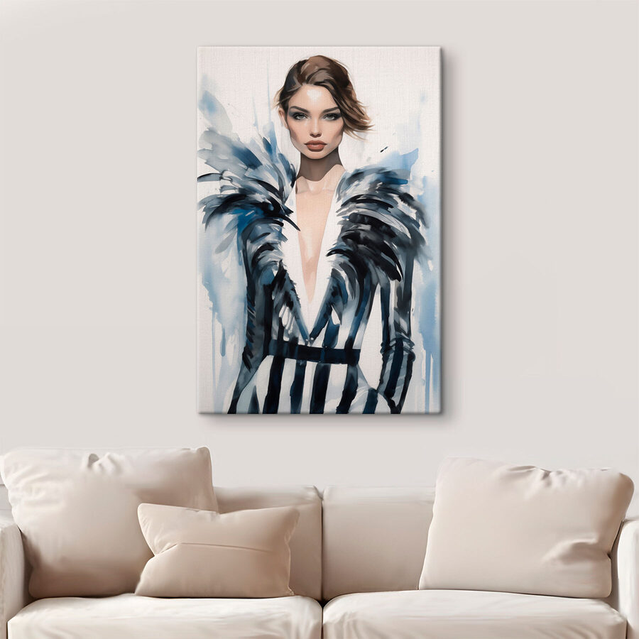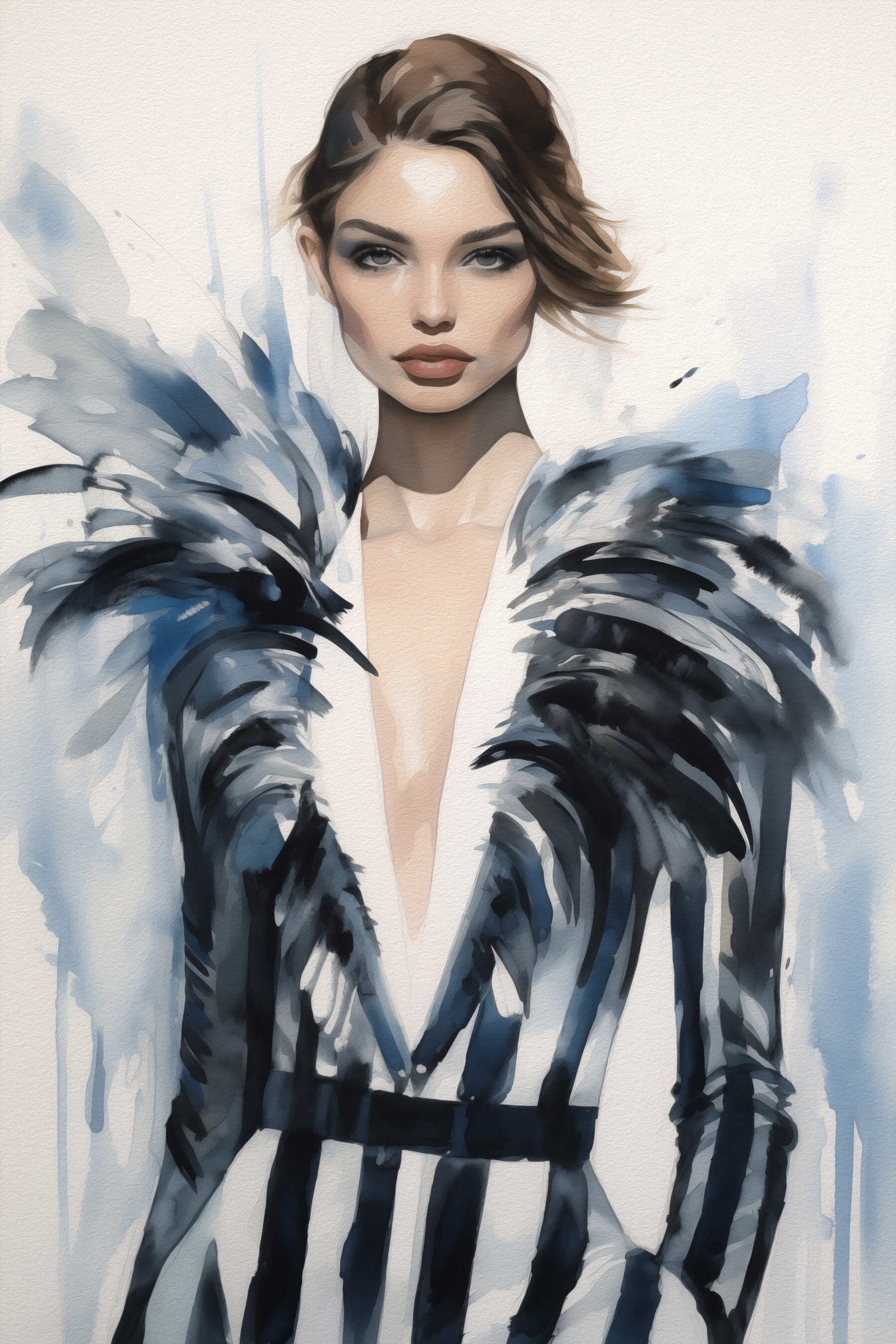 Dieser atemberaubende Leinwanddruck, der eine Frau in einem schwarz-weißen Kleid zeigt, entführt Sie in eine Welt voller Schick. Es ist eines der Stücke, die sofort die Aufmerksamkeit auf sich ziehen und somit perfekt für jeden sind, der seinen Raum aufpeppen möchte. Stellen Sie es sich in einem gemütlichen Wohnzimmer vor, wo es zu Gesprächen anregt und vielleicht sogar zum Träumen einlädt. Die kühnen Linien und die anmutige Figur vermitteln ein Gefühl von Eleganz, das sich irgendwie frisch anfühlt – wie ein Hauch von Luft an einem sonnigen Tag. Mit jedem Blick entfaltet es neue Schichten der Kunstfertigkeit. Perfekt für die Wand, die genau den richtigen Touch braucht!