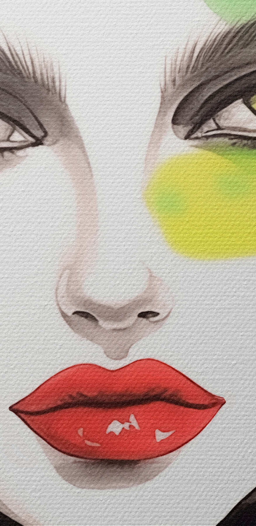 Gestalten Sie Ihren Raum mit diesem auffälligen Leinwandbild, das eine Frau zeigt, die Selbstvertrauen und Kreativität ausstrahlt. Ihr kühnes grünes und gelbes Make-up zieht die Blicke auf sich und sorgt für Gesprächsstoff bei Ihren Gästen. Stellen Sie sich vor, Sie betreten einen Raum, und da ist sie – irgendwie wild und einladend zugleich. Es ist, als würde sie dich herausfordern, aus der Reihe zu tanzen. Perfekt für eine gemütliche Sitzecke oder ein lebhaftes Wohnzimmer, verleiht dieses Werk einen Hauch von Persönlichkeit und Flair und erinnert jeden daran, seine Einzigartigkeit zu akzeptieren. Wer hätte gedacht, dass Kunst so lebendig sein kann?