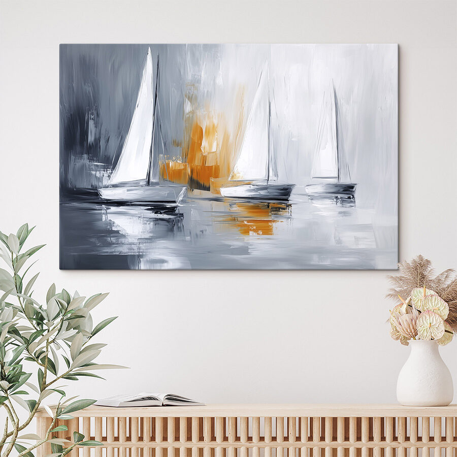 Stellen Sie sich vor: ein ruhiger Morgen auf dem Wasser mit sanften Wellen und sonnenbeschienenen Segeln, alles in einem wunderschön abstrakten Stil festgehalten. Das Leinwandbild “Gruppe von Booten auf dem Wasser” bringt diese Stimmung direkt in jeden Raum und schafft ein unmittelbares Gefühl der Ruhe. Perfekt für ein gemütliches Wohnzimmer oder eine ruhige Büroecke, lädt es zu Tagträumen von fernen Horizonten und faulen Wochenenden ein.