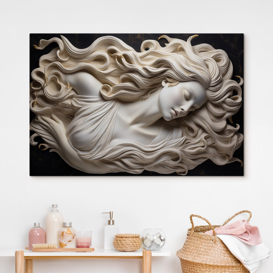 Gestalten Sie Ihren Raum mit diesem fesselnden Leinwanddruck, der eine ruhige Statue einer Frau mit wallendem Haar zeigt, die eine friedliche Ausstrahlung hat. Stellen Sie sich vor, Sie betreten einen Raum und werden von einer solchen Eleganz begrüßt – es ist wie ein sanfter Anstoß, langsamer zu werden und durchzuatmen. Perfekt für eine gemütliche Ecke oder ein stilvolles Wohnzimmer, lädt dieses Kunstwerk zu Tagträumen und tiefen Gedanken ein. Freunde werden wissen wollen, wo es herkommt und neugierige Gespräche anregen. Und wer möchte nicht, dass ein Stück klassische Schönheit über ihn wacht, nicht wahr? Eine wahrhaft bezaubernde Ergänzung, die sowohl zeitlos als auch frisch wirkt!