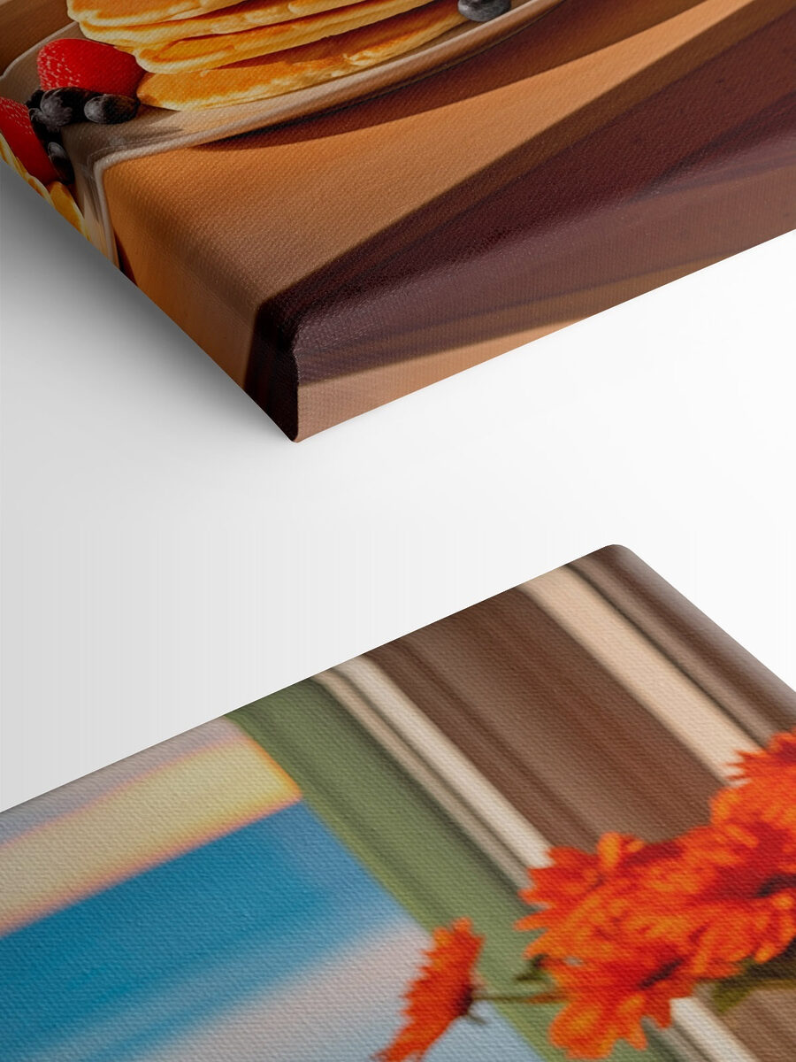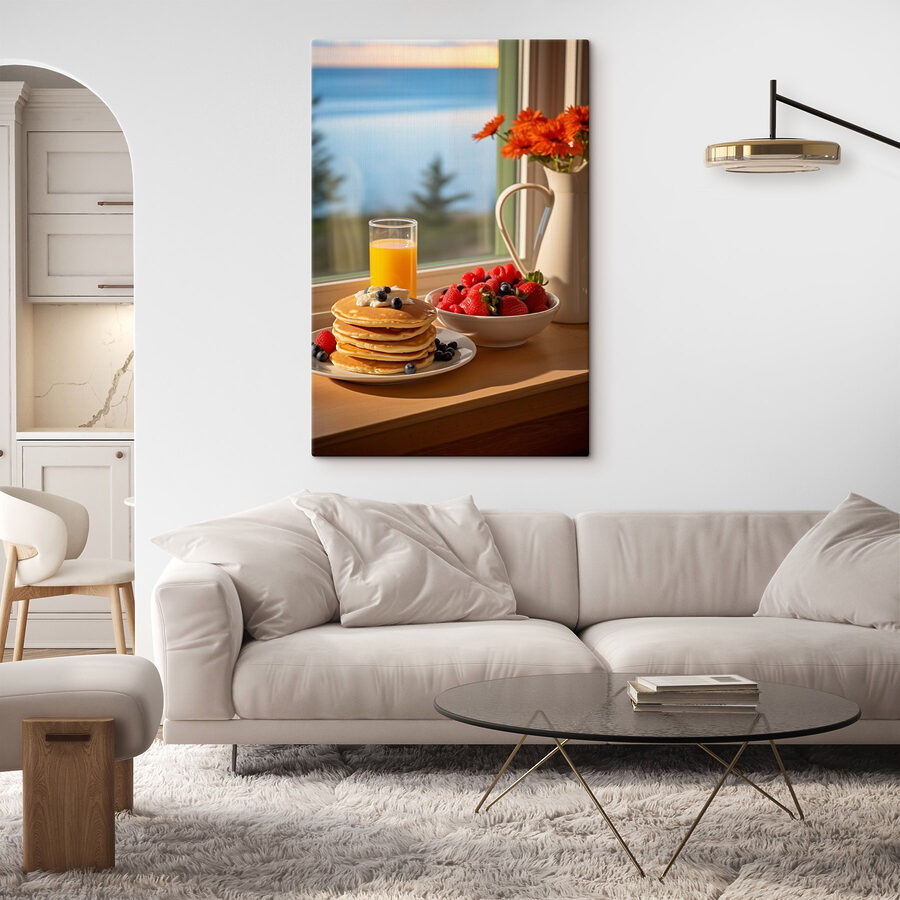 Beginnen Sie den Tag mit einem Hauch von Freude! Dieser Leinwanddruck mit einem köstlichen Stapel Pfannkuchen, garniert mit leuchtenden Beeren und einem erfrischenden Glas Saft, ist ein Fest für die Augen. Stellen Sie sich diese warme Szene in Ihrer Küche oder in Ihrem Essbereich vor – es ist, als hätten Sie jeden Morgen Ihre Frühstücksfreunde bei sich! Die einladenden Farben wecken Gedanken an einen gemütlichen Sonntagmorgen oder ein fröhliches Brunch mit Freunden. Stellen Sie sich das Lächeln und die gute Stimmung vor, die jede Mahlzeit zu etwas ganz Besonderem macht. Perfekt für Essensliebhaber, denn dieses Stück verleiht jedem Raum eine schmackhafte Note!
