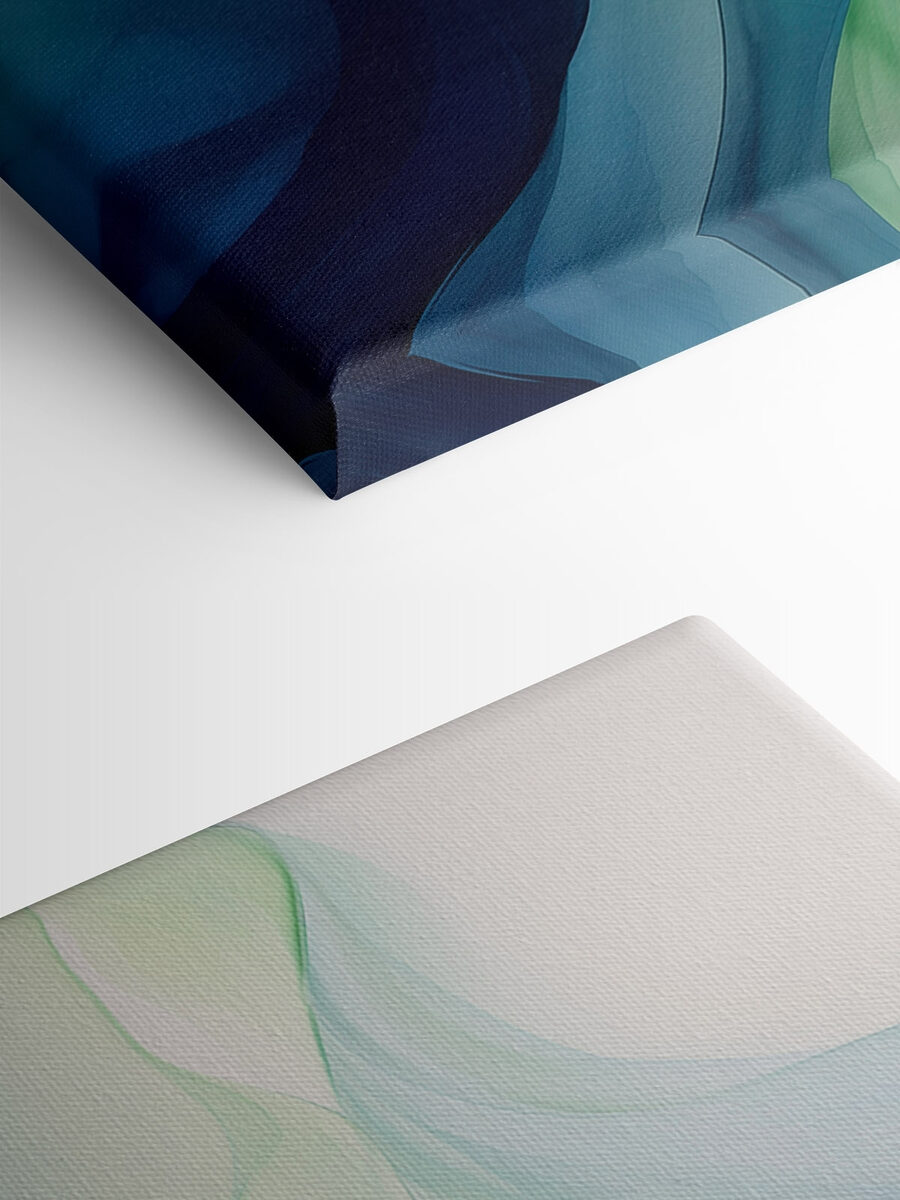 Stellen Sie sich vor, Sie betreten einen Raum, in dem Sie von sanften Wellen fließender Farben empfangen werden. Dieser Leinwanddruck mit seinen beruhigenden Blautönen und sanften Grüntönen schafft ein Gleichgewicht, das sich wie ein frischer Wind anfühlt. Es könnte eine gemütliche Leseecke erhellen oder die perfekte Kulisse für eine Dinnerparty sein und ein Gespräch darüber anregen, wie Kunst einen Raum wirklich verändern kann. Stellen Sie sich vor, Sie machen es sich mit einer Tasse Kaffee gemütlich und verlieren sich in den wirbelnden Mustern, fast so, als würden Sie die Wolken vorbeiziehen sehen. Es ist nicht nur Dekoration, es ist eine Stimmung, ein Erlebnis und ein einzigartiger Gesprächsanlass.