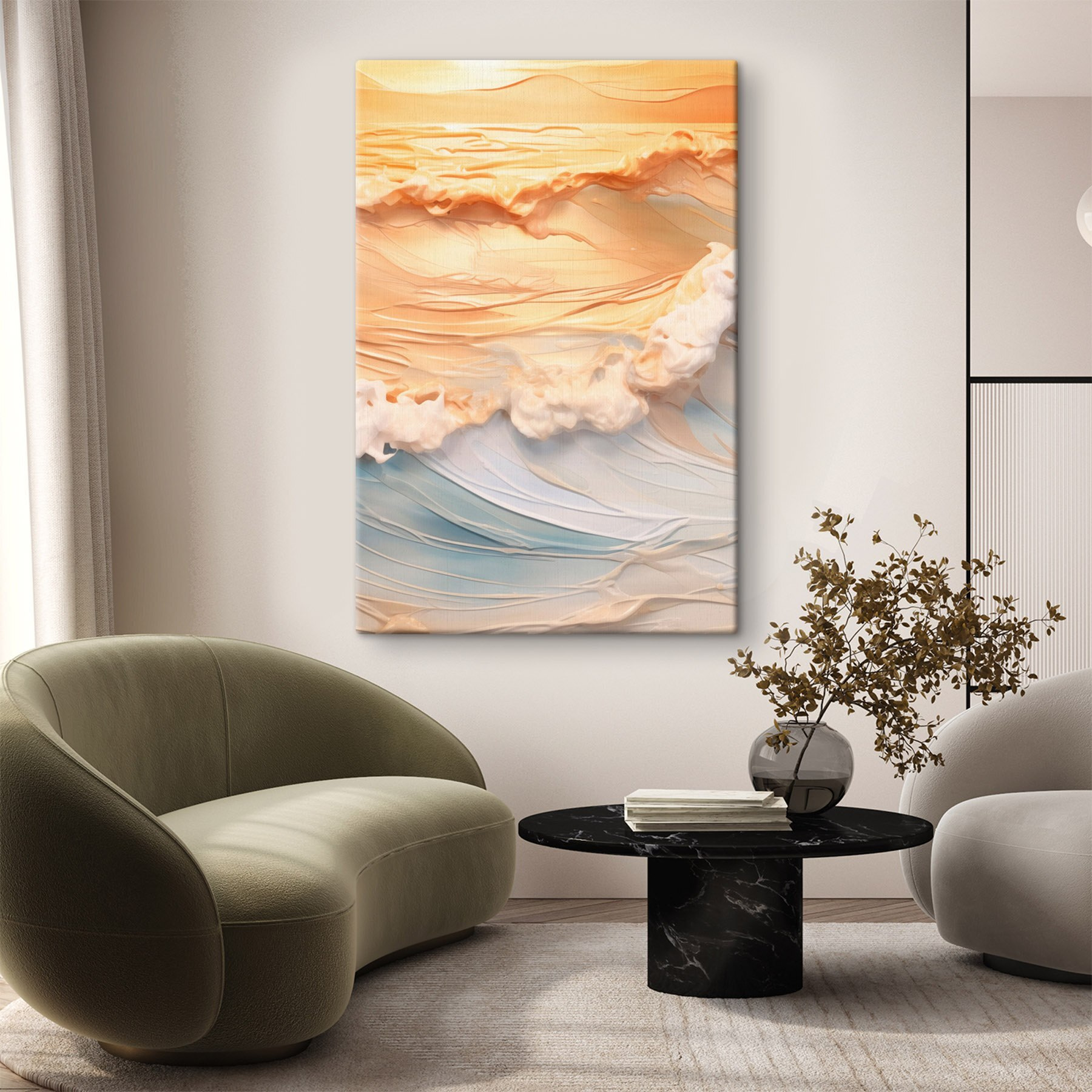 Stellen Sie sich vor, Sie betreten einen Raum, in dem sich sanfte Wellen und warme Farbtöne wie eine kuschelige Decke um Sie legen. Dieser Leinwanddruck “Sanfte Wellen umarmen warme, ruhige Farbtöne” macht genau das. Es ist, als ob Sie sich einen ruhigen Tag am Strand direkt an Ihre Wände holen würden – ohne Sonnenschutzmittel! Die sanften Farben gehen nahtlos ineinander über und laden zu einer friedlichen Stimmung ein, während sie Tagträume von faulen Nachmittagen am Strand wecken. Perfekt für ein Wohnzimmer oder sogar ein ruhiges Schlafzimmer, verwandelt dieses Bild jeden Raum in eine beruhigende Oase. Es ist nicht nur Kunst, sondern auch eine Erinnerung daran, die kleinen Momente der Freude und Ruhe im Alltag zu genießen. Wer würde sich das nicht wünschen?
