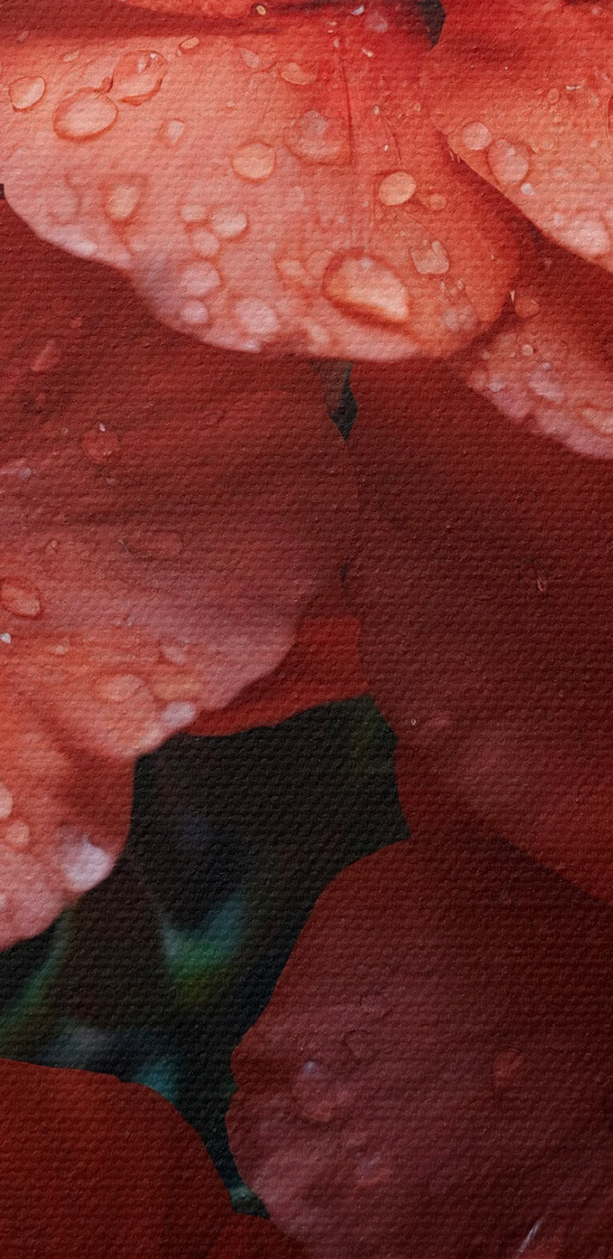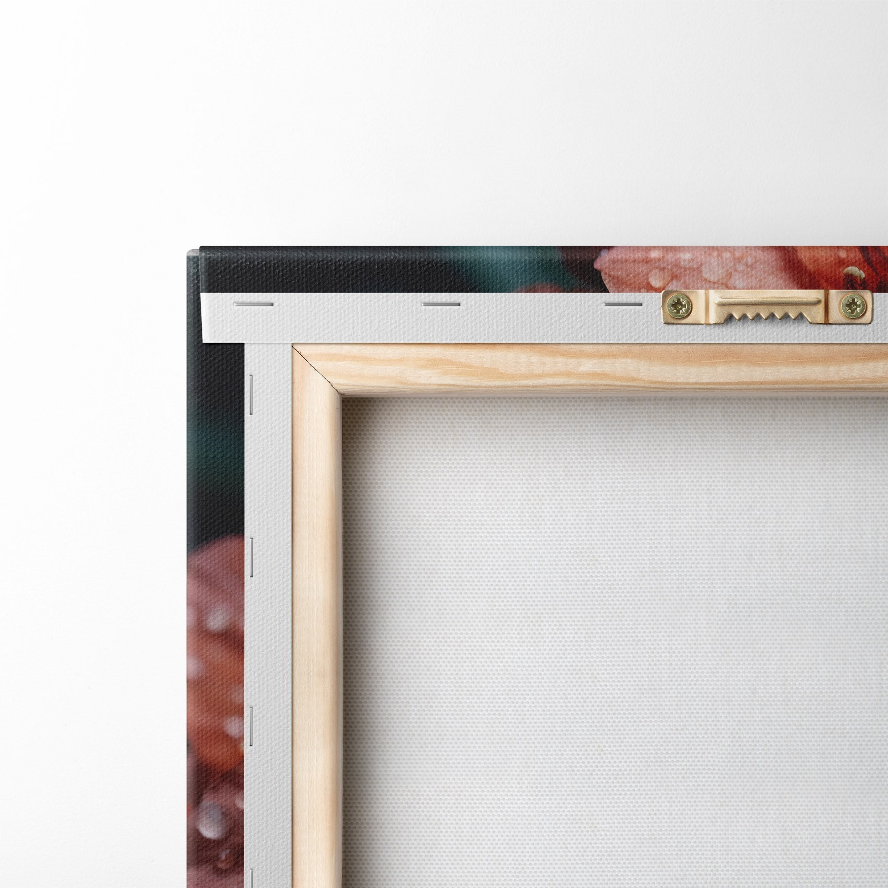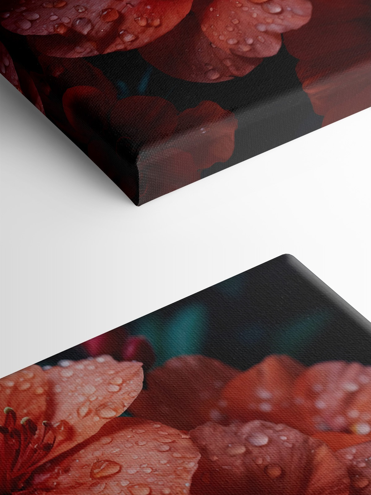 Dieser atemberaubende Leinwanddruck mit roten Blumen, die in Wassertropfen getränkt sind, verschönert jeden Raum. Es ist, als würde man sich ein Stück Natur ins Haus holen, ohne Pollenallergien. Stellen Sie sich vor, Sie betreten Ihr Wohnzimmer und spüren das ganze Jahr über eine frische, frühlingshafte Stimmung. Die leuchtenden Farben heben sich von einer neutralen Wand ab und sind ein toller Gesprächsanlass. Ob für eine gemütliche Leseecke oder einen einladenden Essbereich, dieses Kunstwerk sorgt für den perfekten Spritzer Wärme. Außerdem erinnert es daran, dass Schönheit auch unter den regnerischsten Bedingungen gedeihen kann. Und wer würde das nicht lieben?