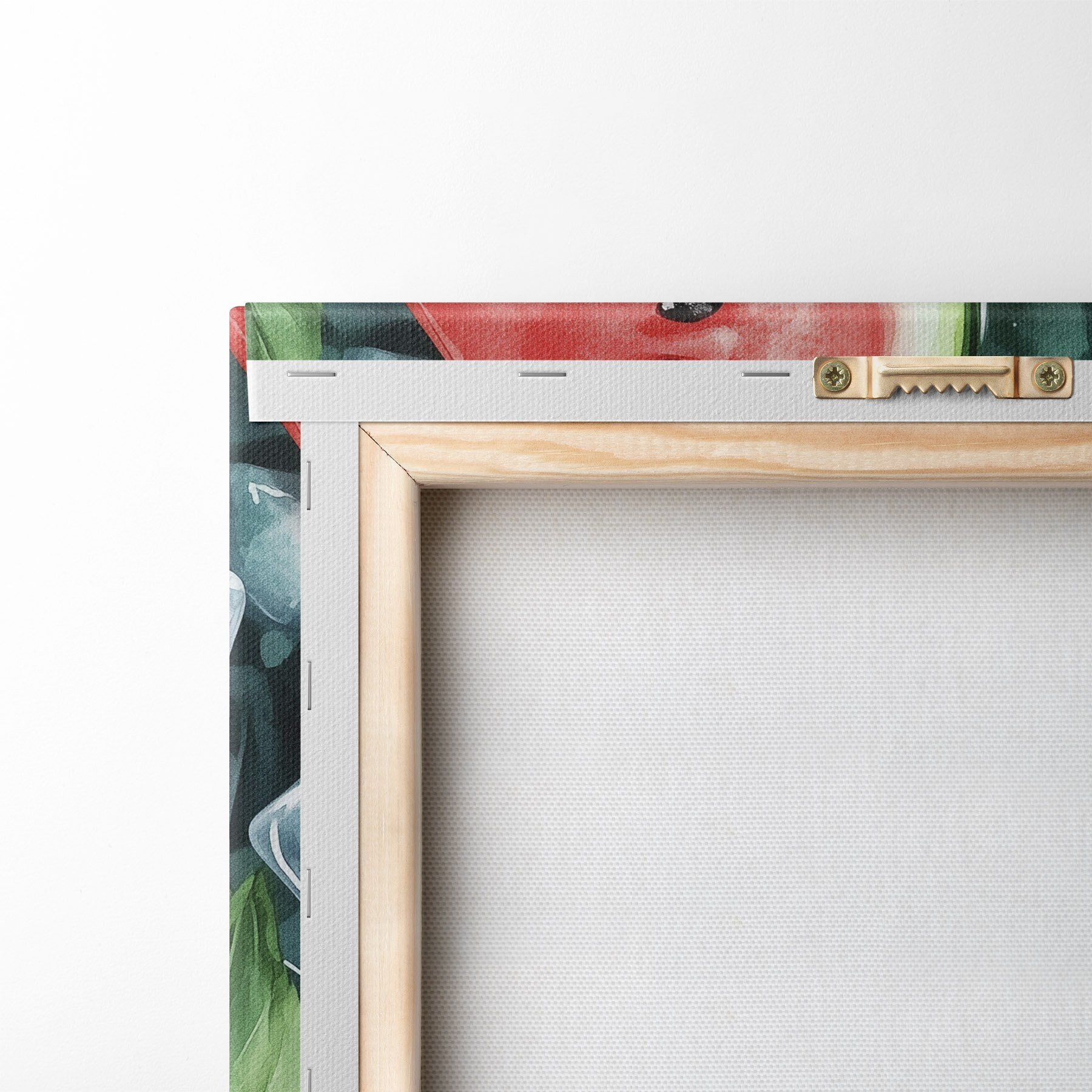 Dieser verspielte Leinwanddruck mit saftigen Wassermelonenscheiben, die auf einem Bett aus Eiswürfeln liegen, bringt frischen Wind in Ihren Raum. Stellen Sie sich vor, dass es in Ihrer Küche oder Ihrem Esszimmer hängt und einen erfrischenden Hauch von Sommer an jede triste Wand bringt. Die leuchtenden Rot- und Grüntöne sind wie eine fröhliche Einladung, sich ein Stückchen zu nehmen und einen sonnigen Tag zu genießen. Und wer liebt nicht einen Farbklecks, der einem das Gefühl gibt, warm und kuschelig zu sein? Es ist wie ein kleines Stück vom Paradies direkt zu Hause, und glauben Sie mir, dieses Kunstwerk wird mehr Komplimente bekommen als ein süßer Welpe im Park!