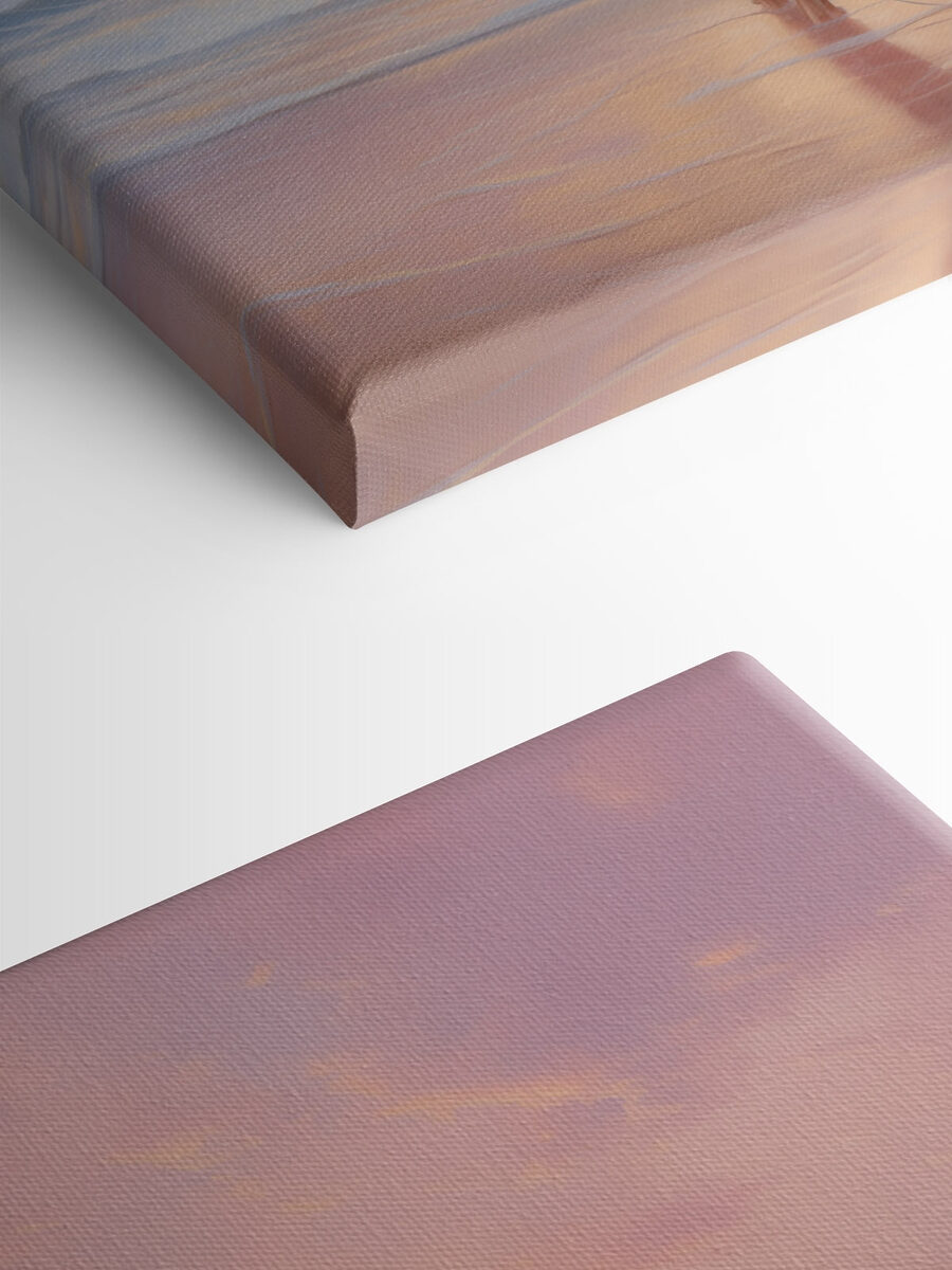 Dieser Leinwanddruck fängt einen Moment ein, der sich wie eine Brise an einem sonnigen Nachmittag anfühlt. Eine Frau im Badeanzug steht selbstbewusst da, mit dem Surfbrett in der Hand, und blickt auf den ruhigen Ozean hinaus. Der weiche pastellfarbene Himmel und die sanften Wellen lassen das Bild wie einen kleinen Urlaub in den eigenen vier Wänden erscheinen. Stell dir vor, du gehst an diesem Bild vorbei und lächelst unwillkürlich oder träumst sogar davon, die perfekte Welle zu erwischen. Es geht um diese entspannte, strandige Stimmung, perfekt für jeden, der ein wenig Küstencharme in sein Zuhause bringen möchte. Ob es nun Erinnerungen an Sommerabenteuer weckt oder zu zukünftigen Strandausflügen inspiriert, dieses Kunstwerk verleiht jedem Raum einen Hauch von Freude.
