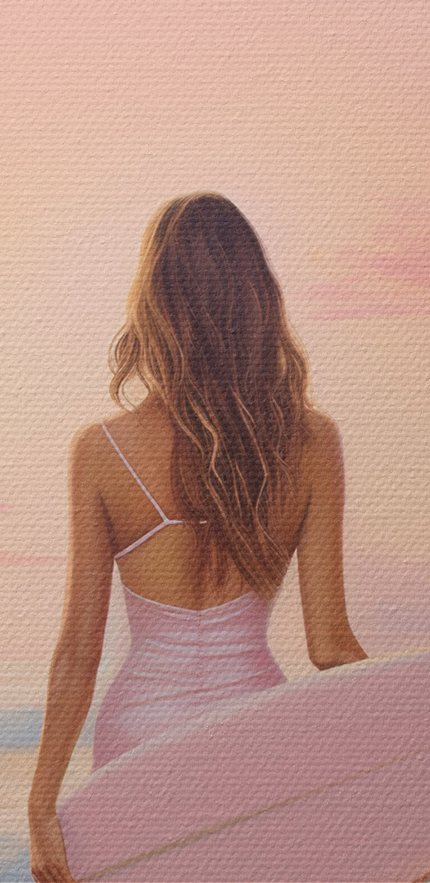 Dieser Leinwanddruck fängt einen Moment ein, der sich wie eine Brise an einem sonnigen Nachmittag anfühlt. Eine Frau im Badeanzug steht selbstbewusst da, mit dem Surfbrett in der Hand, und blickt auf den ruhigen Ozean hinaus. Der weiche pastellfarbene Himmel und die sanften Wellen lassen das Bild wie einen kleinen Urlaub in den eigenen vier Wänden erscheinen. Stell dir vor, du gehst an diesem Bild vorbei und lächelst unwillkürlich oder träumst sogar davon, die perfekte Welle zu erwischen. Es geht um diese entspannte, strandige Stimmung, perfekt für jeden, der ein wenig Küstencharme in sein Zuhause bringen möchte. Ob es nun Erinnerungen an Sommerabenteuer weckt oder zu zukünftigen Strandausflügen inspiriert, dieses Kunstwerk verleiht jedem Raum einen Hauch von Freude.