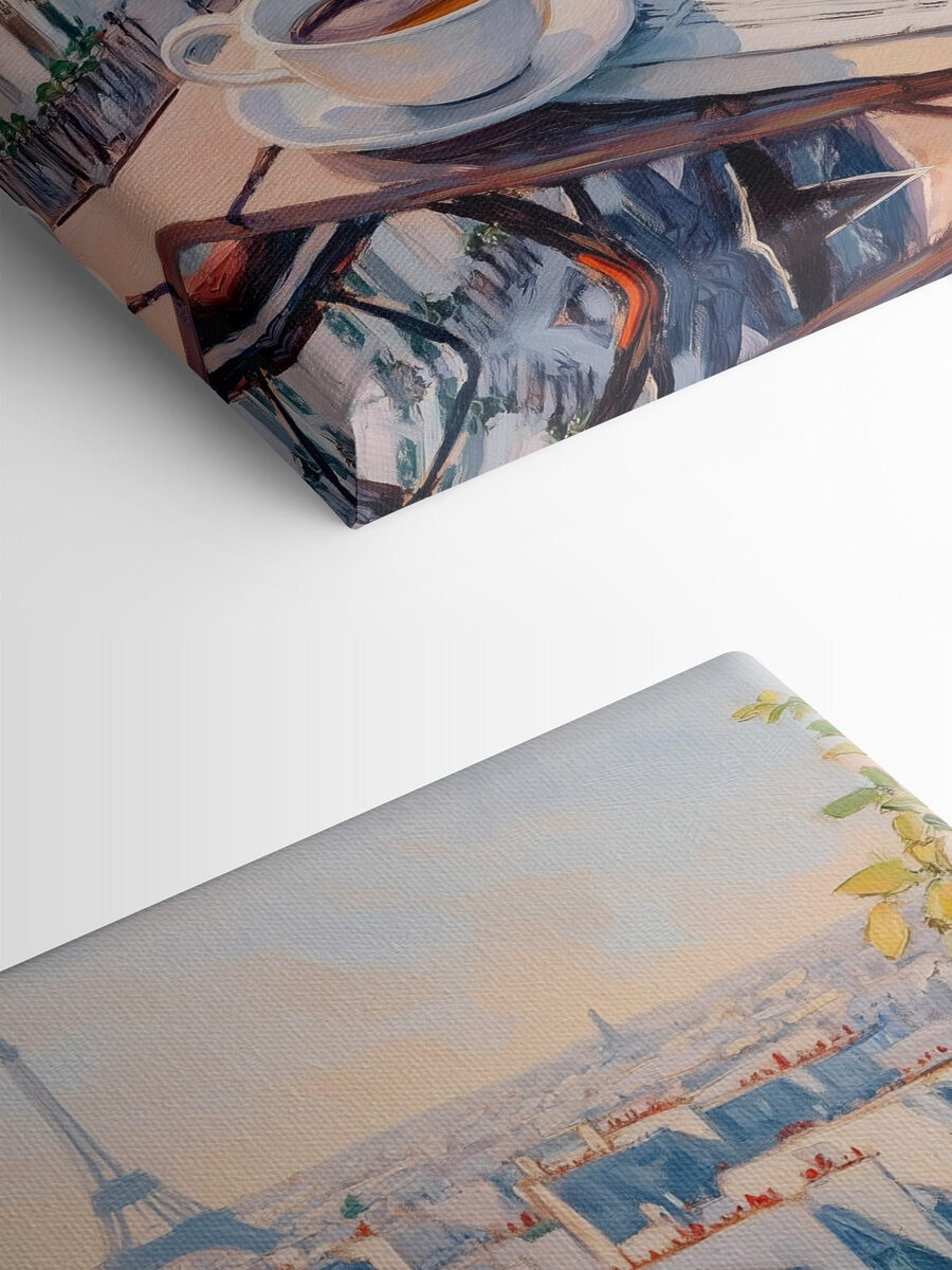Stellen Sie sich vor, Sie beginnen Ihren Tag mit einer Aussicht, die Ihnen den Atem raubt. Dieser Leinwanddruck zeigt eine gemütliche Frühstücksszene, in der eine dampfende Tasse Kaffee neben einem flockigen Croissant und saftigen Erdbeeren steht, eingerahmt von den charmanten Dächern von Paris. Es ist, als würde man auf einen sonnenverwöhnten Balkon entführt, auf dem das geschäftige Treiben der Stadt verblasst. Die sanften Farben und die einladende Atmosphäre laden zum Träumen ein – wer würde nicht gerne einen Kaffee schlürfen, während er sich in dieser ruhigen Atmosphäre entspannt? Perfekt für die Küche oder den Essbereich, bringt dieses Stück Wärme und einen Hauch von Fernweh in jeden Raum. Holen Sie sich ein Stück von diesem Zauber und lassen Sie Ihre Wände eine Geschichte erzählen!