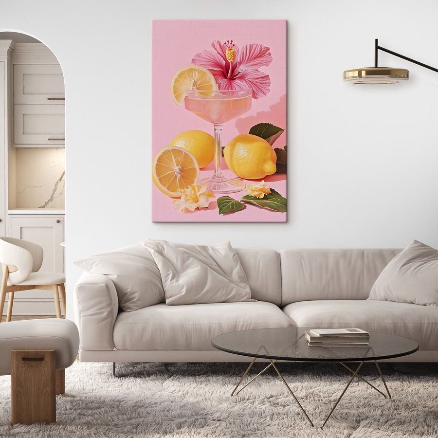 Verschönern Sie jeden Raum mit diesem entzückenden Leinwanddruck “Glas mit Getränk und Zitronen”. Stellen Sie sich vor: Ein erfrischendes Getränk steht neben leuchtenden Zitronen, alles vor einem fröhlichen rosa Hintergrund. Es ist wie ein Sommertag in der Flasche an Ihrer Wand. Stellen Sie sich vor, Sie nippen an der Limonade und spüren die Sonne auf Ihrem Gesicht, sogar im Dezember. Perfekt für eine Küche oder einen Essbereich, setzt dieses Stück nicht nur einen Farbtupfer, sondern regt auch zu Gesprächen an. Die Gäste werden sich zu ihm hingezogen fühlen und vielleicht sogar nach einem Getränkerezept fragen. Eine witzige und einladende Idee, die mit Sicherheit für ein Lächeln sorgt.