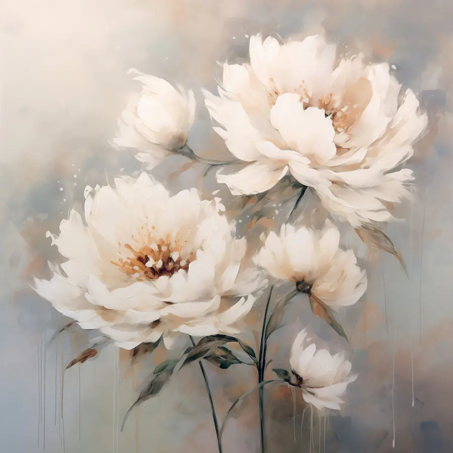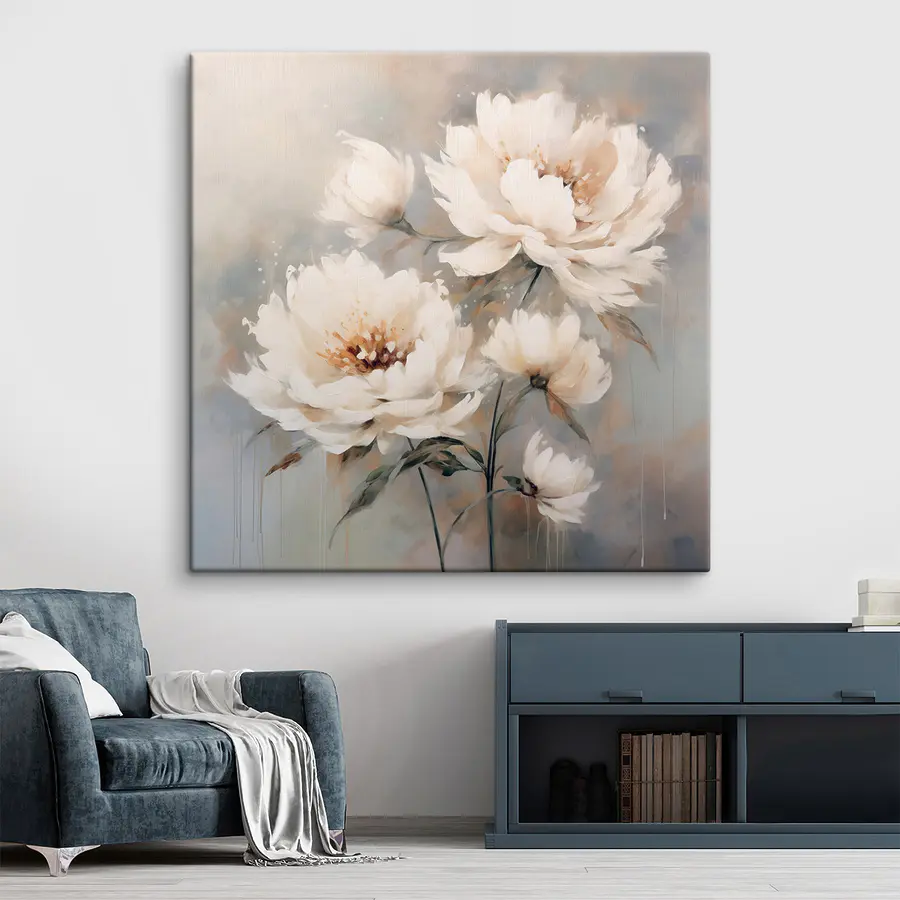 Verändern Sie Ihren Raum mit diesem atemberaubenden Leinwanddruck, der zarte weiße Blumen zeigt. Es ist, als ob man einen Hauch von frischer Luft ins Haus holt – sanfte Farbtöne und zarte Striche schaffen eine beruhigende Atmosphäre, die den Raum mit Wärme erfüllt. Stellen Sie sich vor: Sie schlürfen Ihren Morgenkaffee, das Sonnenlicht strömt herein, und diese schönen Blüten lächeln Sie an. Es ist nicht nur Dekoration, es ist ein Erlebnis. Freunde werden vorbeikommen, einen Blick darauf werfen und vielleicht sogar fragen, wie Sie es geschafft haben, eine solche Eleganz zu Hause einzufangen. Dieses Kunstwerk ist ideal für jeden Ort, der einen Hauch von Natur braucht, und lädt zu Freude und Gelassenheit ein.