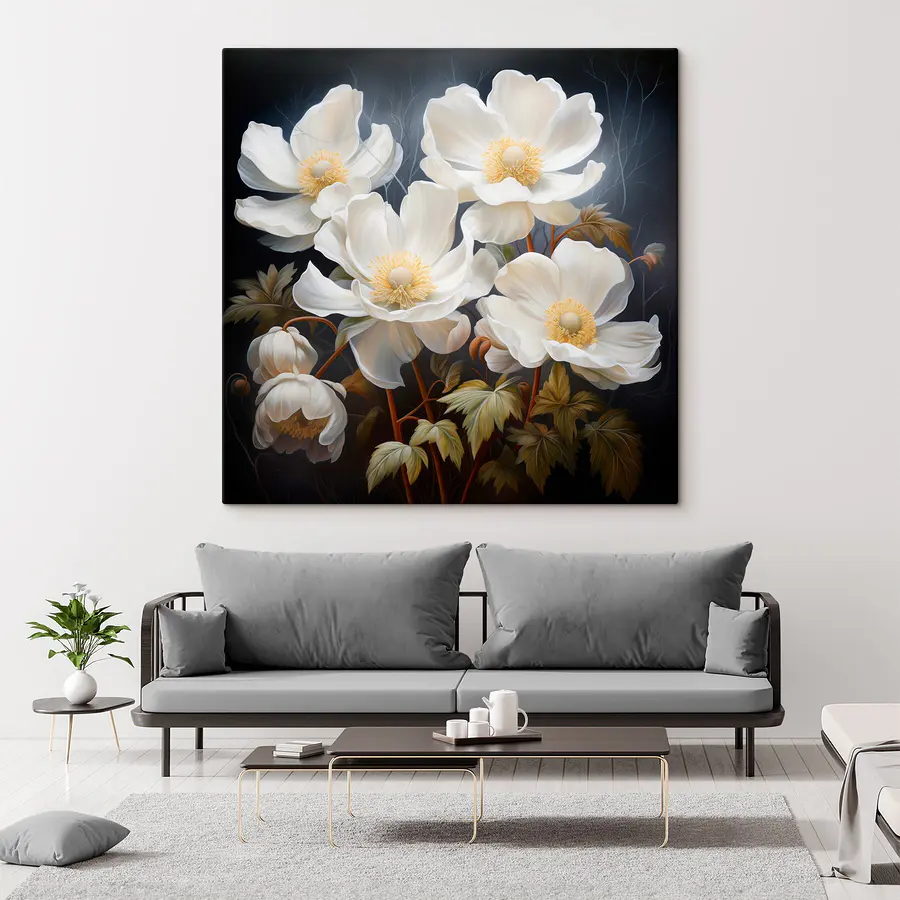 Holen Sie sich einen Hauch von frischer Luft mit diesem atemberaubenden Leinwanddruck mit wunderschönen weißen Blumen. Jede einzelne Blüte scheint auf der Leinwand zu tanzen und bringt ein Gefühl von Ruhe und Gelassenheit in jeden Raum. Stellen Sie sich vor, Sie gehen daran vorbei und haben das Gefühl, einen verträumten Garten zu betreten – ganz ohne grünen Daumen. Ob in einer gemütlichen Leseecke oder in Ihrem Wohnzimmer, dieses Stück verleiht mühelos Charme und Charakter. Es ist, als hätte man ein kleines Stück Natur im Haus – perfekt für die Tage, an denen man sich lieber an den Blumen erfreut, als sich um sie zu kümmern. Dieses Kunstwerk regt garantiert zu Gesprächen an und schafft eine einladende Atmosphäre für Freunde und Familie.