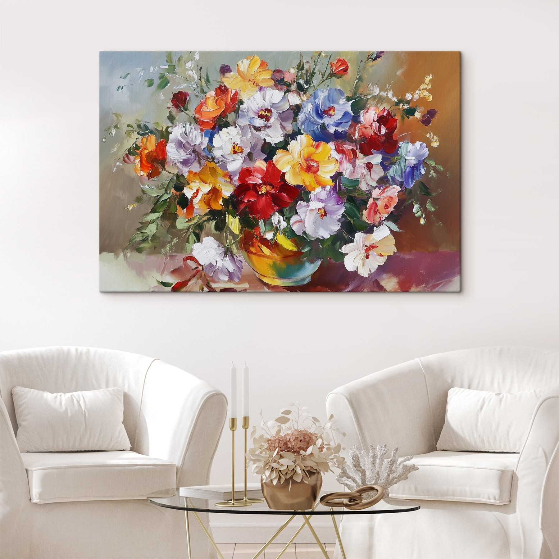Verschönern Sie jeden Raum mit diesem bezaubernden Leinwanddruck, der einen leuchtenden Blumenstrauß in einer Vase zeigt – perfekt für alle, die keine echten Blumen aufbewahren können! Stellen Sie sich vor, Sie betreten Ihren Raum und werden von einer Explosion von Farbe und Fröhlichkeit begrüßt. Die verspielte Blütenmischung bringt einen Hauch von Natur ins Haus und ist ein toller Gesprächsanlass. Es ist, als hätte sich ein Garten entschlossen, auszubrechen und über Ihre Wand zu tanzen. Ob im Wohnzimmer oder in der gemütlichen Ecke, in der Sie Ihren Kaffee schlürfen, dieser Druck schafft eine einladende Atmosphäre, die einfach gut tut. Wer braucht nicht ab und zu ein wenig Blumenzauber?