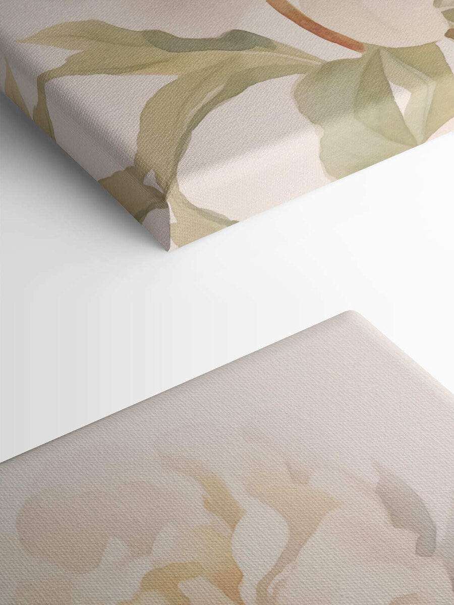Tauchen Sie ein in eine Welt voller Eleganz mit diesem Leinwanddruck, der eine zarte weiße Blume inmitten üppiger grüner Blätter zeigt. Es erhellt mühelos jeden Raum und lässt die Wände lebendig und einladend wirken – wie eine sanfte Umarmung nach einem langen Tag. Stellen Sie sich vor, Sie betreten Ihren Raum und werden von diesem kleinen Stück Natur begrüßt. Der subtile Aquarelleffekt verleiht ihm eine luftige, entspannte Ausstrahlung, perfekt für eine gemütliche Ecke oder ein luftiges Wohnzimmer. Es ist nicht nur ein Druck, sondern eine Einladung, innezuhalten, zu atmen und die einfache Schönheit um uns herum zu genießen. Hängen Sie es auf, und lassen Sie die kleinen Freuden des Lebens erblühen.