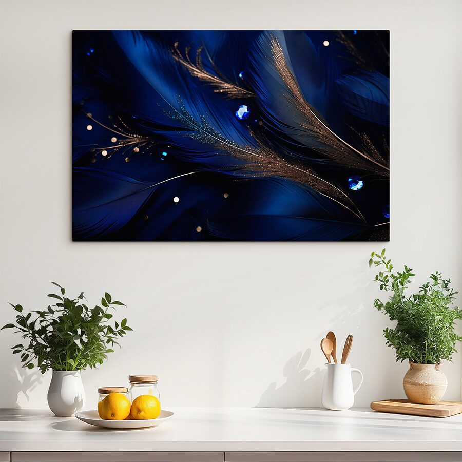 Tauchen Sie ein in eine Welt der Eleganz mit dem Wandbilder Elegant Feathers on Deep Blue Fabric. Stellen Sie sich vor, wie diese atemberaubenden Federn in Ihrem Zimmer herumwirbeln und einen Hauch von Laune und Raffinesse verbreiten. Der tiefblaue Hintergrund bringt das Design zur Geltung und schafft eine verträumte Atmosphäre, in der man sich nach einem langen Tag entspannen kann. Jede Feder scheint ihre eigene Geschichte zu haben und Geheimnisse über die Schönheit der Natur zu verraten. Es ist, als hätte man ein kleines Stück Gelassenheit direkt an der Wand. Vielleicht bleiben Ihre Freunde stehen, um es zu bewundern – und wer liebt es nicht, wenn es für Gesprächsstoff sorgt? Perfekt für jeden Raum, der einen Spritzer Kunstfertigkeit braucht!