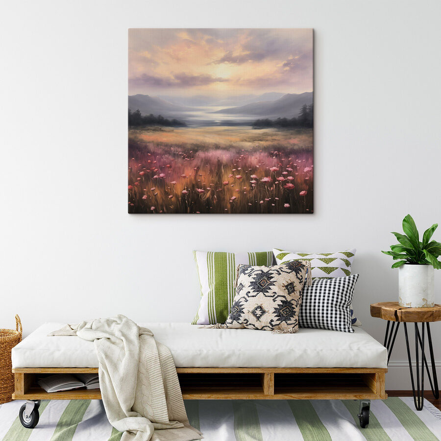 Stellen Sie sich vor, Sie treten in eine Welt ein, in der leuchtende Blumen im Wind tanzen, umrahmt von majestätischen Bergen. Dieser Leinwanddruck ist nicht nur eine Dekoration, sondern eine kleine Flucht direkt an Ihrer Wand. Der bunte Strauß an Farben und die ruhige Landschaft laden zu Tagträumen von gemütlichen Nachmittagen und sanften Wanderungen ein. Stellen Sie sich diese Schönheit in einer gemütlichen Ecke oder über einer Leseecke vor, die jedes Mal, wenn Sie vorbeischlendern, Freude auslöst. Es ist, als ob man sich einen Garten ins Haus holt, ohne Gießkanne oder lästiges Unkraut. Perfekt für alle, die sich nach dem Charme der Natur sehnen, mit einem Hauch von Glückseligkeit und Wunder!