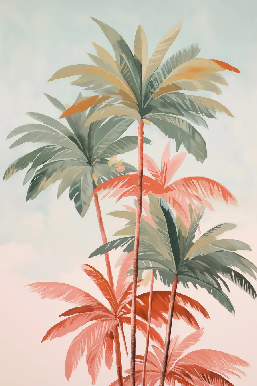 Verändern Sie Ihren Raum mit diesem lebendigen Leinwandbild, das eine lebhafte Gruppe von Palmen zeigt. Stellen Sie sich vor, wie Sie sich in Ihrem Wohnzimmer oder Ihrem Büro entspannen, umgeben von diesen verspielten Grüntönen und zarten Rosatönen, die an eine sanfte tropische Brise erinnern. Das ist wie ein Mini-Urlaub direkt an Ihrer Wand! Die entspannte Ausstrahlung dieser Palmen lädt zu Wärme und Entspannung ein und macht jeden Tag zu etwas Besonderem. Perfekt für alle, die sich ein Stück Natur ins Haus holen wollen. Dieses Kunstwerk weckt Freude und lädt zu Tagträumen von sonnigen Stränden und faulen Nachmittagen ein. Eine schöne Ergänzung für jeden Einrichtungsstil!