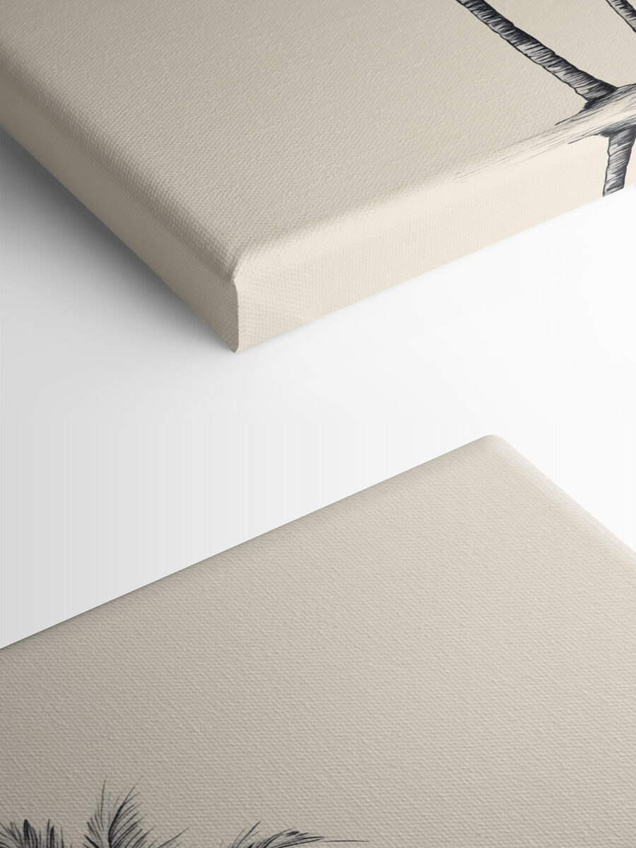 Verwandeln Sie eine leere Wand in Ihr eigenes Stück Paradies mit diesem bezaubernden Leinwanddruck, der ein anmutiges Palmen-Duo zeigt. Stellen Sie sich vor, Sie betreten Ihren Raum und lassen sich von der tropischen Stimmung anstecken, selbst wenn es nur Dienstagmorgen ist. Das schwarz-weiße Design verbindet mühelos Minimalismus mit Natur und eignet sich perfekt für einen beruhigenden Rückzugsort oder einen lebhaften Gesprächsanlass. Es ist, als hätte man ein kleines Stück Urlaub zu Hause – ohne Sonnencreme! Er ist eine schöne Bereicherung für jeden Raum, denn er vermittelt Entspannung und verleiht ihm einen Hauch von schickem Flair. Perfekt für gemütliche Nachmittage mit einem Buch oder ein spätabendliches Gespräch mit Freunden. Wer würde sich nicht gerne ein wenig Palmenzauber gönnen?