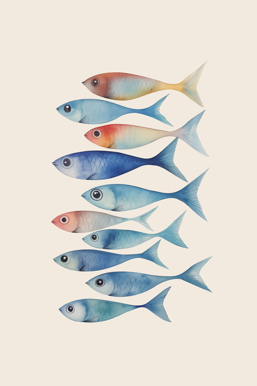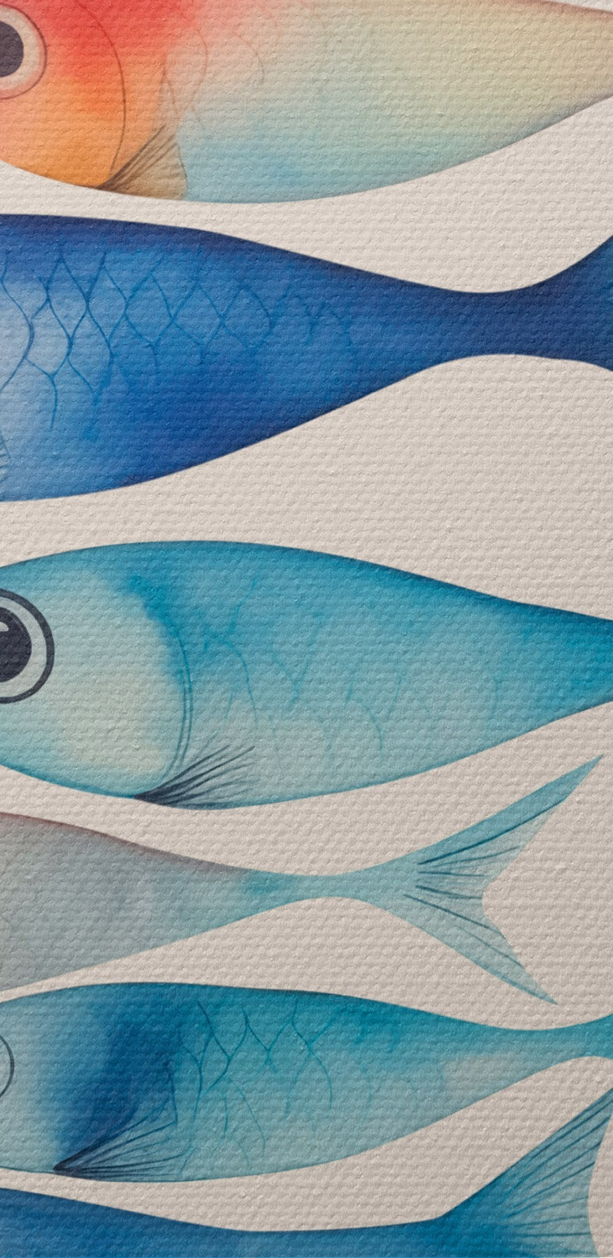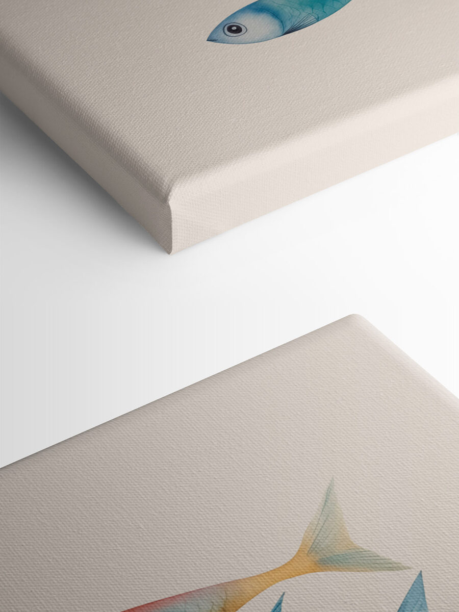 Tauchen Sie ein in eine Welle von Farben mit diesem charmanten Leinwandbild, das eine verspielte Gruppe von Fischen zeigt. Jeder von ihnen hat einen einzigartigen Farbton, der eine lebendige Meeresatmosphäre schafft, die jede Ecke Ihres Zuhauses aufhellen könnte. Stellen Sie sich vor, dass es in einem gemütlichen Wohnzimmer oder einem skurrilen Kinderzimmer hängt und jedes Mal, wenn jemand vorbeikommt, Freude und vielleicht ein kleines Lachen auslöst. Es ist, als hätte man ein kleines Aquarium ohne den Aufwand für Fütterung und Reinigung! Ob im Strandhaus oder in der Stadt, dieses Stück bringt einen Hauch von Natur und Spaß, der selbst den trübsten Tag ein wenig aufhellen kann.
