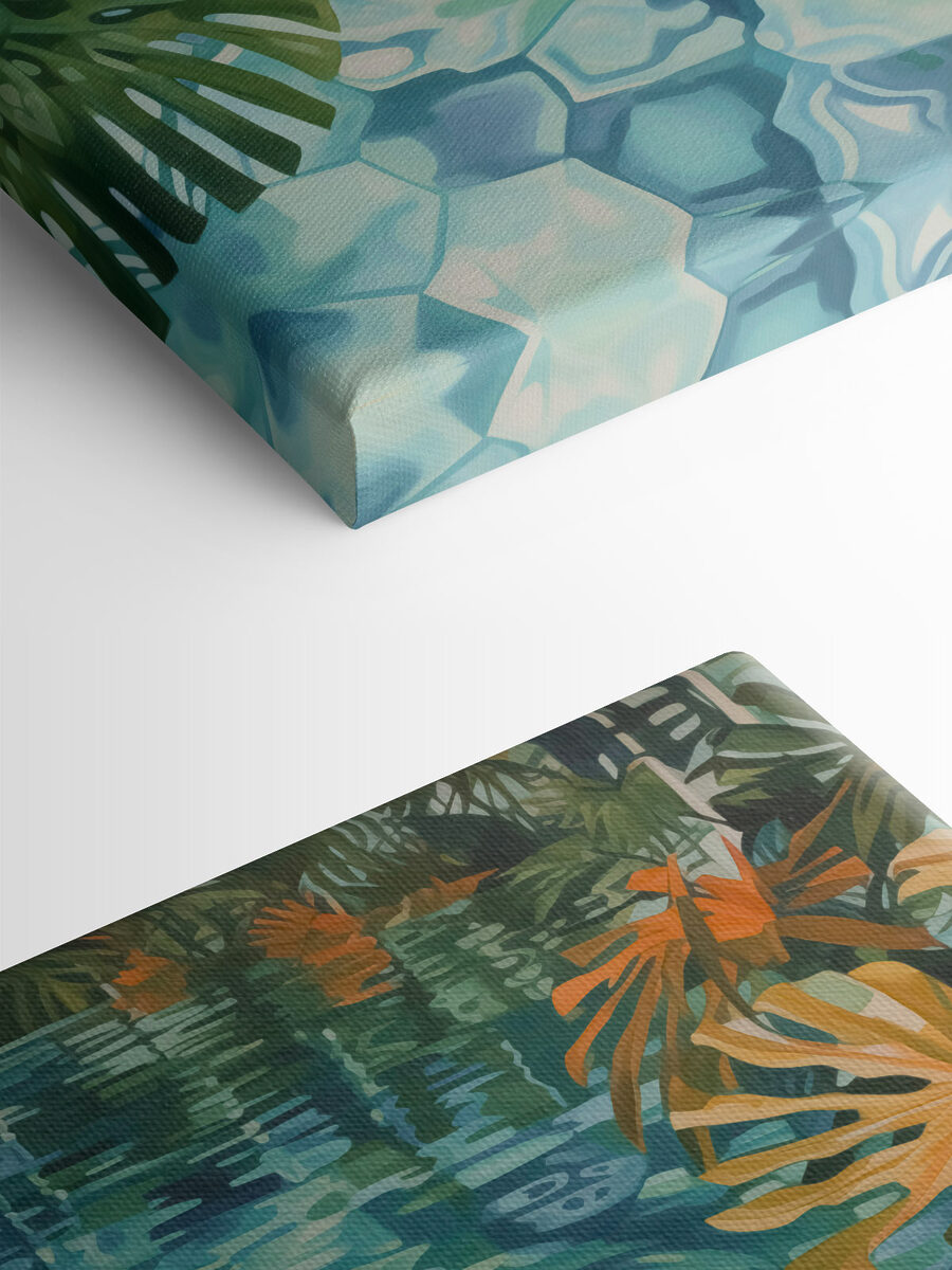 Stellen Sie sich die Ruhe eines friedlichen Pools vor, in dem die Natur mit dem ruhigen Wasser tanzt, und dieser Leinwanddruck bringt diese Szene direkt in Ihr Zuhause. Die friedliche, in Gedanken versunkene Figur, umgeben von üppigem Grün, ist wie ein kleiner Urlaub für Ihre Wände. Dieses Kunstwerk eignet sich perfekt für eine gemütliche Leseecke oder einen Ort, der ein wenig Leben braucht, und lädt Sie ein, innezuhalten, durchzuatmen und vielleicht sogar ein wenig zu träumen. Die Farben? So erfrischend wie ein Spritzer kühles Wasser. Es ist mehr als nur Dekoration; es ist eine Erfahrung – eine sanfte Erinnerung daran, die kleinen Momente des Friedens im Alltag zu genießen.
