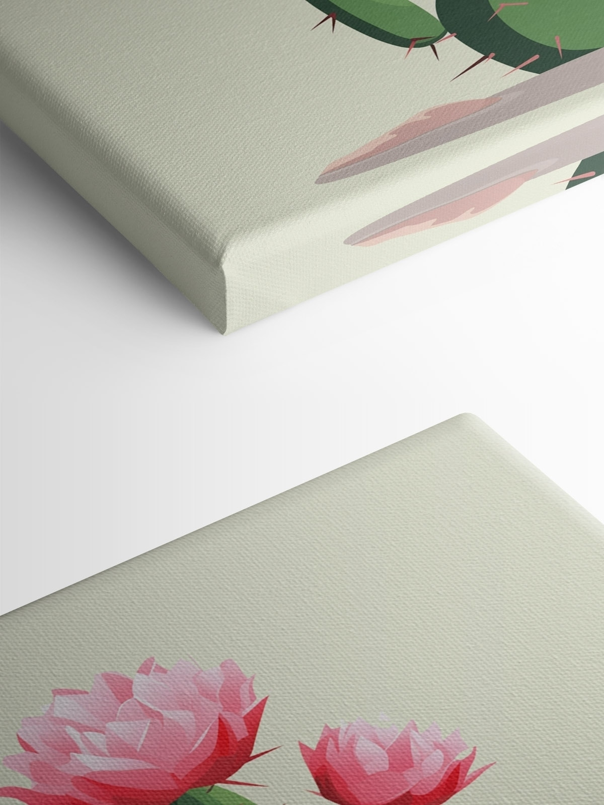 Dieser hübsche Leinwanddruck mit einem Kaktus, der mit bezaubernden rosafarbenen Blumen geschmückt ist, bringt jeden Raum zum Strahlen. Es ist wie eine lustige Wüstenparty für Ihre Wände! Stellen Sie sich vor, Sie betreten einen Raum und spüren sofort die Wärme eines sonnigen Tages. Die kräftigen Farben und das verspielte Design sind perfekt für ein Wohnzimmer oder eine gemütliche Ecke. Außerdem bringt es ein Stück Natur ins Haus, ohne dass man sich um die Bewässerung kümmern muss. Ihre Freunde werden Sie bestimmt fragen, woher Sie dieses einzigartige Stück haben. Perfekt, um eine langweilige Wand zu verschönern und ihr einen Hauch von Persönlichkeit zu verleihen, finden Sie nicht auch? Ein fröhlicher Gesprächsanlass ist das allemal!