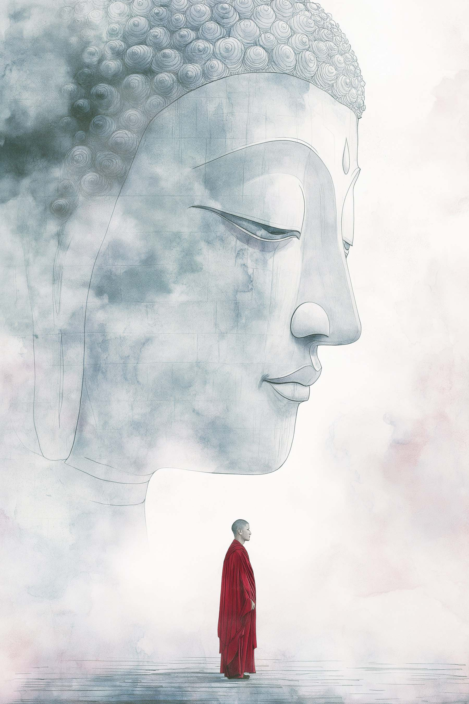 Verändern Sie jeden Raum mit diesem atemberaubenden Leinwanddruck, der einen Moment tiefer Reflexion einfängt. Stellen Sie sich eine friedliche Szene vor, in der eine kleine Figur vor einem majestätischen Gesicht steht, das gleichzeitig zart und kraftvoll ist. Die gedämpften Farben schaffen eine beruhigende Atmosphäre und eignen sich perfekt für eine Meditationsecke oder eine gemütliche Leseecke. Es lädt zu Gesprächen ein – sicher werden Sie Gäste finden, die es gedankenverloren betrachten. Stellen Sie sich vor, Sie schlürfen einen Tee und das Bild inspiriert Sie sanft zu einem Moment der Klarheit. Egal, ob Sie sich für Kunst interessieren oder einfach nur einzigartige Dekoration lieben, dieses Stück verleiht jeder Wand einen Hauch von Gelassenheit und Unterhaltung. Es ist nicht nur Kunst, es ist eine Stimmung.