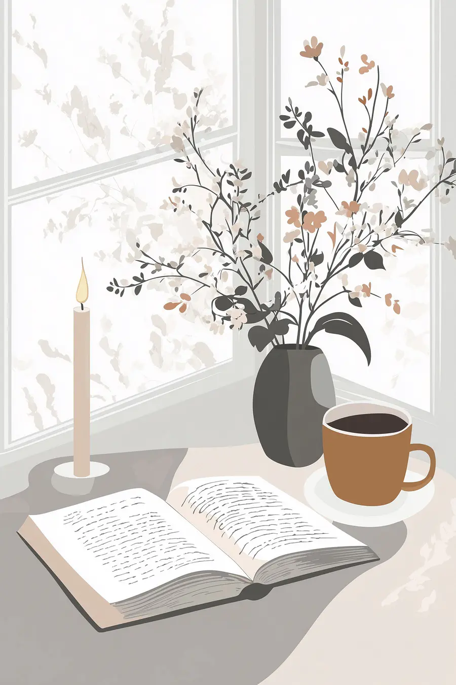 Stellen Sie sich vor, Sie machen es sich mit einer warmen Tasse Kaffee, einem guten Buch und sanftem Kerzenlicht gemütlich. Dieser Leinwanddruck fängt diesen Zauber perfekt ein. Es ist, als würde man sich ein Stückchen Frieden nach Hause holen. Die sanften Farben vermitteln das Gefühl eines sonnigen Morgens, an dem jedes Umblättern neue Abenteuer mit sich bringt. Egal, ob es im Wohnzimmer, im Arbeitszimmer oder in einer ruhigen Ecke aufgehängt wird, es verströmt auf subtile Weise Entspannung. Es ist nicht nur Kunst – es ist eine kleine Erinnerung daran, langsamer zu werden, durchzuatmen und die gemütlichen Momente zu genießen, die das Leben mit Wärme und Freude erfüllen. Perfekt für alle, die die Natur und einen Hauch von Charme lieben.