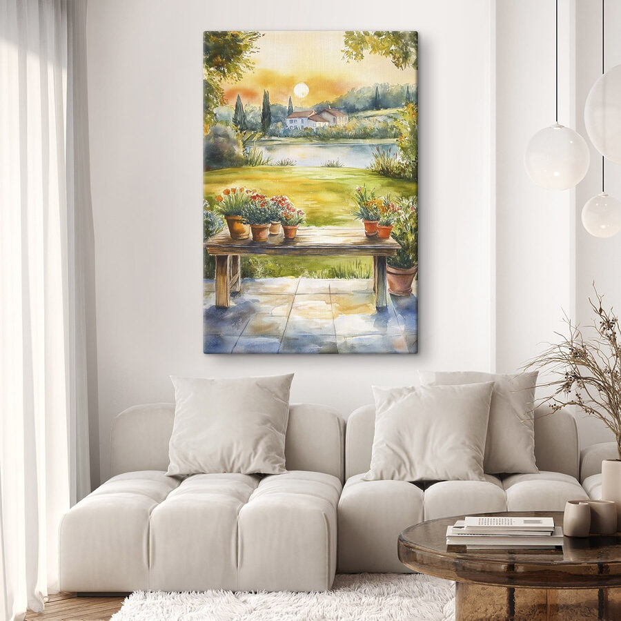 Verwandeln Sie jede Wand in einen gemütlichen Rückzugsort mit diesem Leinwanddruck, der eine bezaubernde Aquarellszene eines mit lebhaften Topfpflanzen geschmückten Tisches zeigt. Man fühlt sich wie in einem sonnendurchfluteten Garten, in dem Lachen und eine warme Brise wehen. Perfekt für alle, die sich nach ein wenig Natur im Haus sehnen! Stellen Sie sich vor, Sie veranstalten ein Brunch mit Freunden, umgeben von diesen fröhlichen Blüten – man kann fast die Vögel zwitschern hören, oder? Dieses Kunstwerk bringt eine frische Atmosphäre in jeden Raum und ist nicht nur Dekoration, sondern auch eine Erinnerung daran, die kleinen Dinge des Lebens zu genießen. Wer würde sich das nicht wünschen?