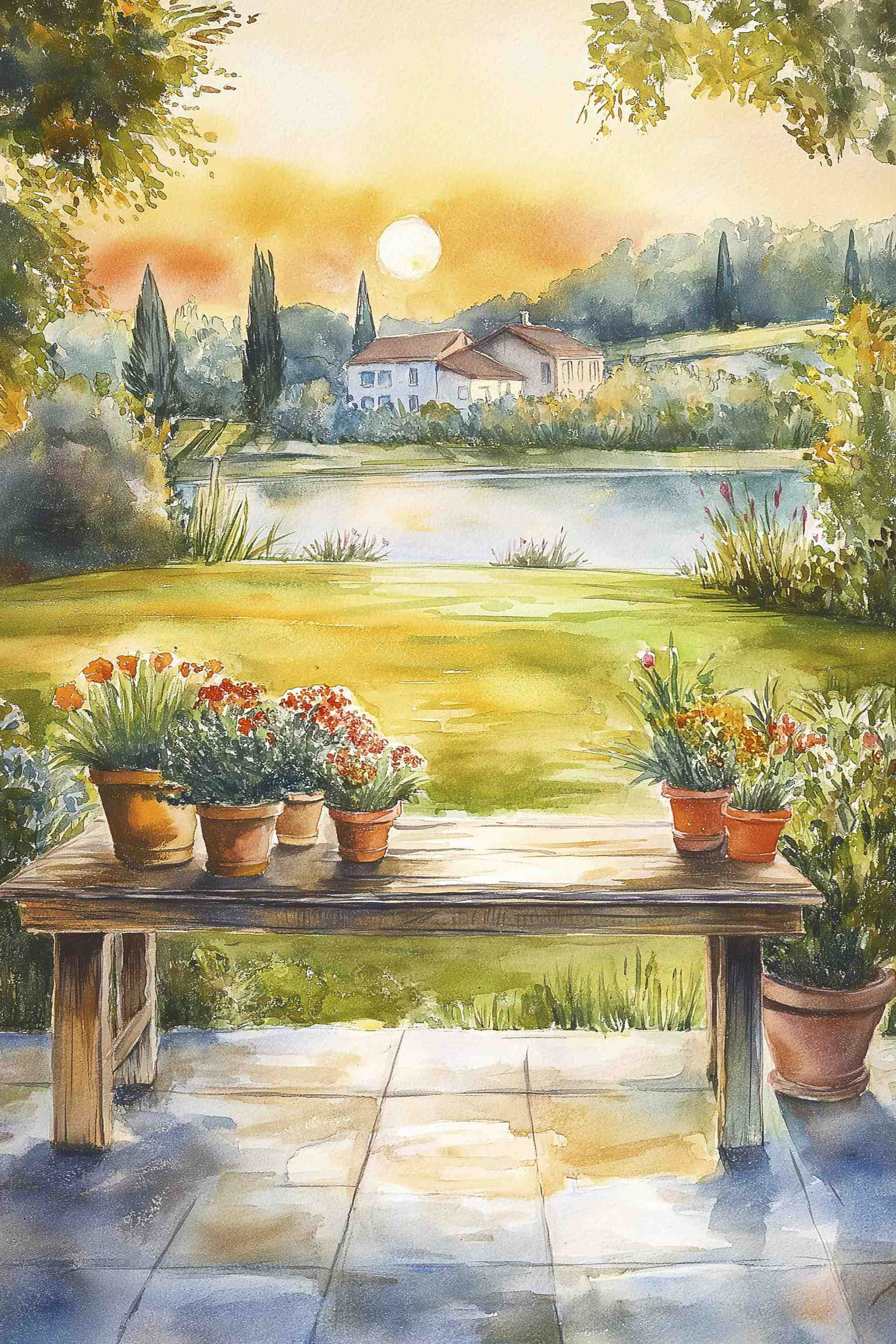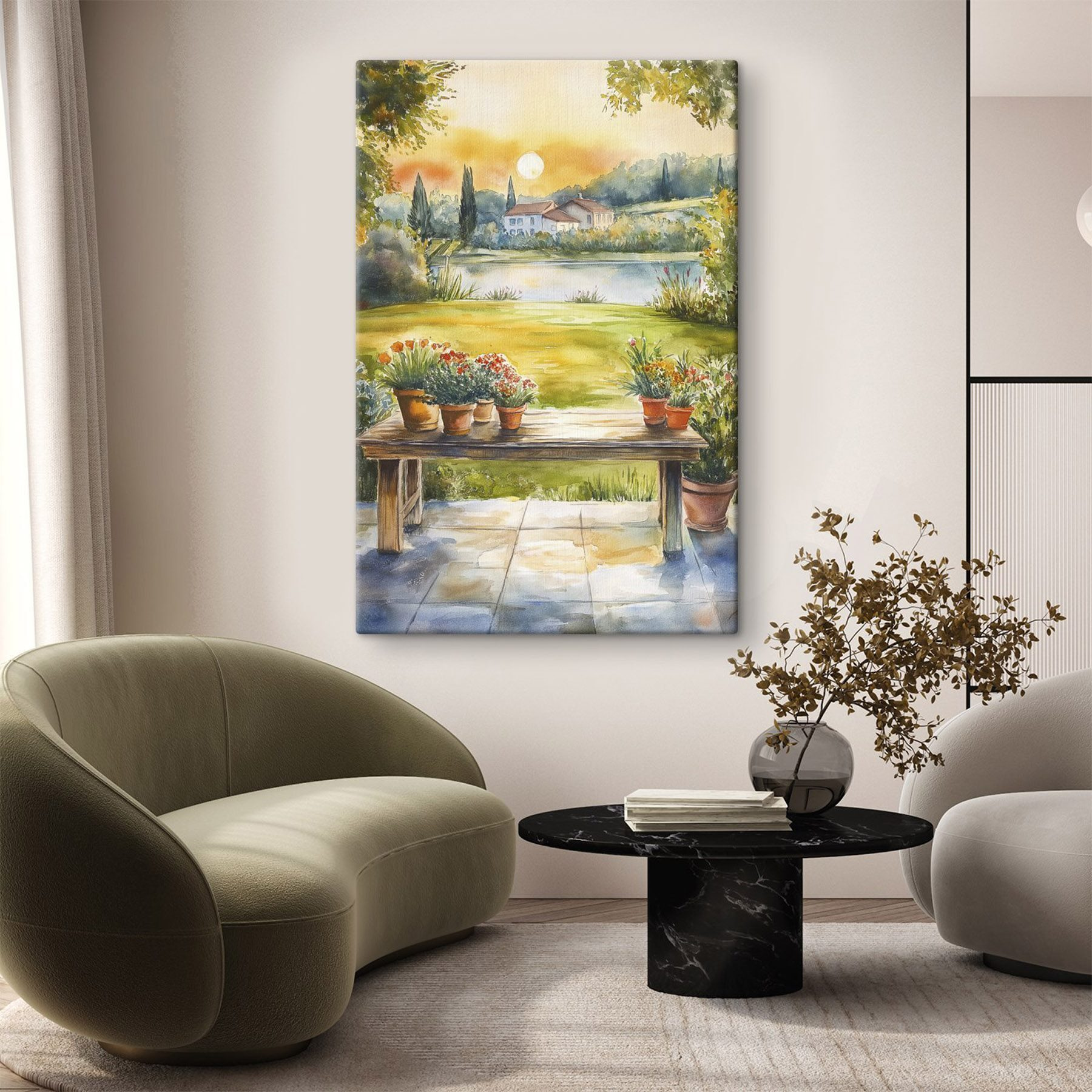 Verwandeln Sie jede Wand in einen gemütlichen Rückzugsort mit diesem Leinwanddruck, der eine bezaubernde Aquarellszene eines mit lebhaften Topfpflanzen geschmückten Tisches zeigt. Man fühlt sich wie in einem sonnendurchfluteten Garten, in dem Lachen und eine warme Brise wehen. Perfekt für alle, die sich nach ein wenig Natur im Haus sehnen! Stellen Sie sich vor, Sie veranstalten ein Brunch mit Freunden, umgeben von diesen fröhlichen Blüten – man kann fast die Vögel zwitschern hören, oder? Dieses Kunstwerk bringt eine frische Atmosphäre in jeden Raum und ist nicht nur Dekoration, sondern auch eine Erinnerung daran, die kleinen Dinge des Lebens zu genießen. Wer würde sich das nicht wünschen?