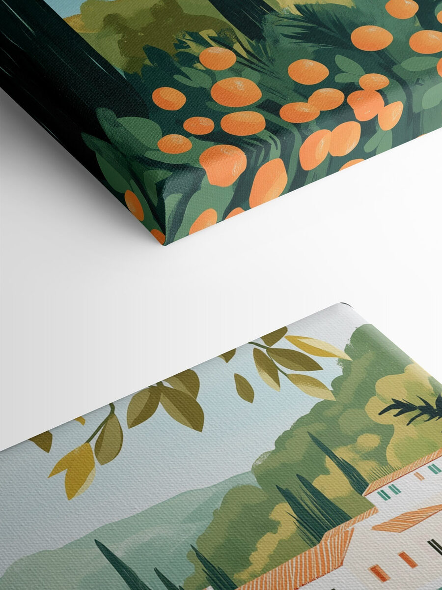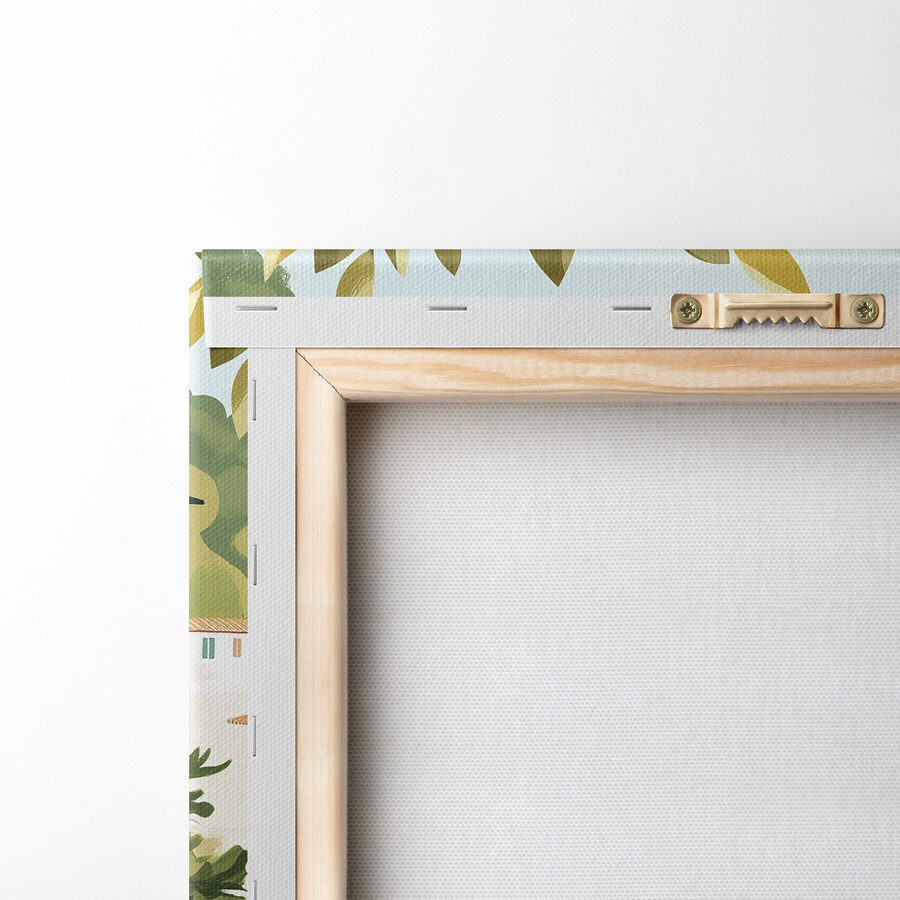 Mit diesem Leinwanddruck eines charmanten Hauses inmitten von Bäumen und üppigen Pflanzen können Sie sich in eine heitere Welt zurückziehen. Es ist, als ob Sie ein Stück Natur direkt in Ihren Wohnraum einladen würden. Stellen Sie sich vor, Sie schlürfen Ihren Morgenkaffee, während das Sonnenlicht durch Ihre Fenster tanzt und diese Szene zum Leben erweckt. Die warmen Farben und die einladende Landschaft ziehen Sie in ihren Bann und wecken Gefühle von Entspannung und Abenteuer. Ob in einer gemütlichen Ecke oder in einem hellen Flur aufgehängt, es weckt mit Sicherheit entzückende Tagträume über faule Tage, an denen man in schönen Gärten spazieren geht. Perfekt für Naturliebhaber oder alle, die sich ein wenig Magie ins Haus holen wollen.