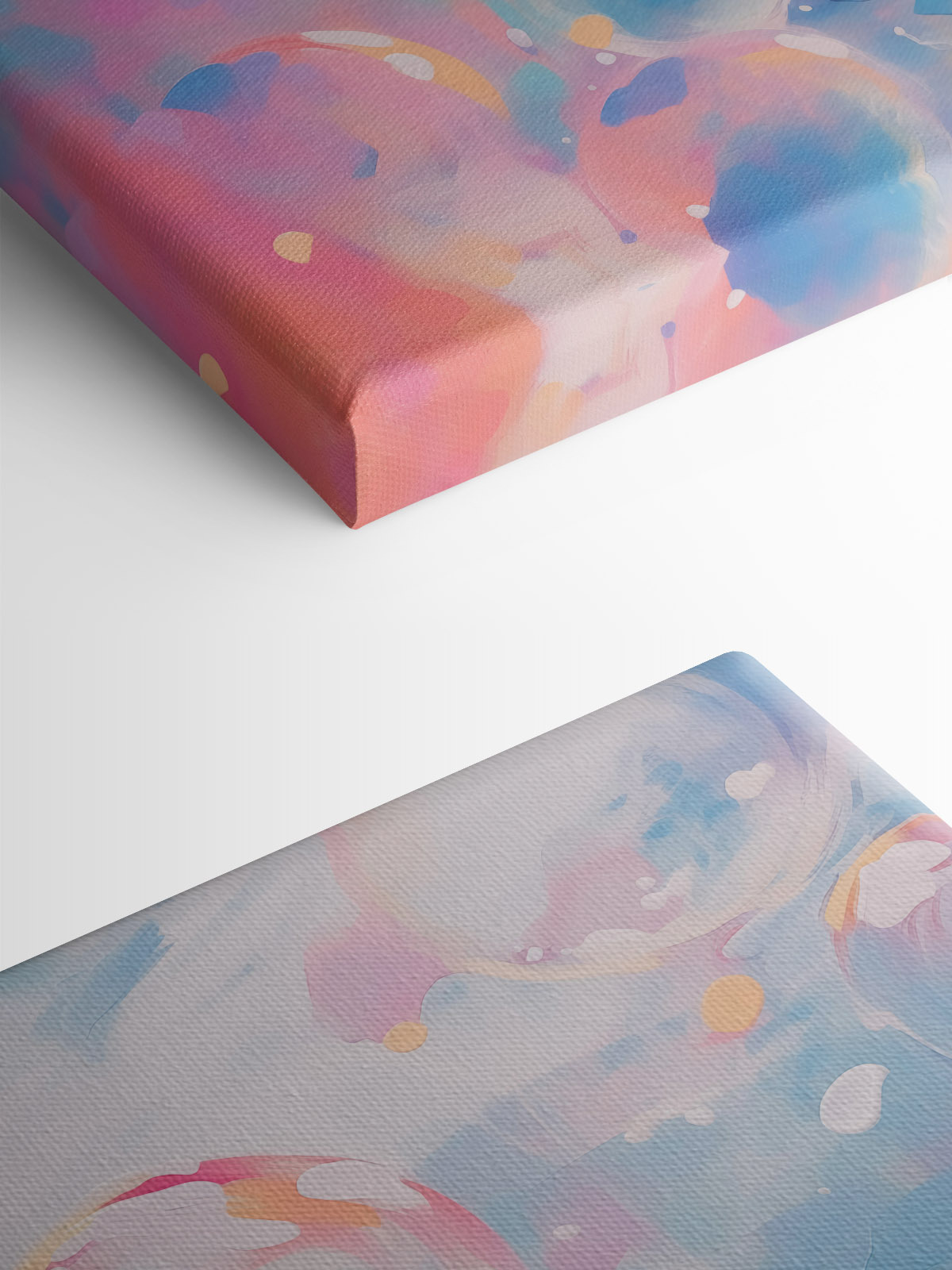 Stellen Sie sich vor, Sie betreten einen Raum und werden von einer verspielten Ansammlung von Seifenblasen begrüßt, die sanft vor einem verträumten Hintergrund in Pastellblau und -rosa schweben. Dieser Leinwanddruck mit dem treffenden Namen “Group of Bubbles in the Air” bringt ein Gefühl von Laune und Leichtigkeit in jeden Raum. Es ist wie der Moment, in dem man mit einem Freund aus Kindertagen Seifenblasen pustet – einfach nur schön! Hängen Sie es in einer gemütlichen Ecke oder sogar im Wohnzimmer auf, und beobachten Sie, wie es sofort die Stimmung hebt. Es ist Kunst, die tanzt und atmet und jeden Blick wie eine kleine Reise in eine Welt der unbeschwerten Fantasie erscheinen lässt. Es ist nicht nur Dekoration, sondern auch eine Erinnerung daran, sich an den kleinen Dingen zu erfreuen.