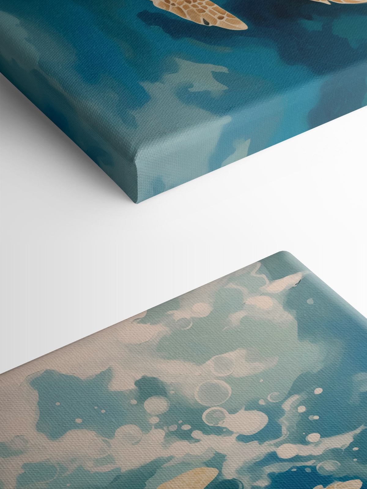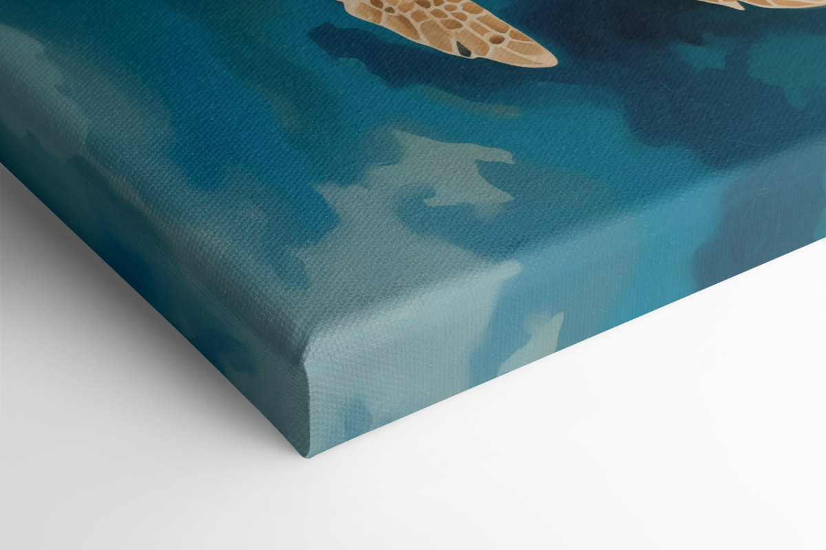 Tauchen Sie ein in eine ruhige Unterwasserwelt mit diesem bezaubernden Leinwandbild von zwei Schildkröten, die anmutig durch das Wasser gleiten. Es ist wie ein kleiner Urlaub direkt an Ihrer Wand, der Sie an die sonnenbeschienenen Meere und sanften Wellen entführt. Stellen Sie sich vor, Sie betreten einen Raum und fühlen sich sofort ruhiger – diese bezaubernden Kreaturen bringen definitiv ein bisschen Strandglück in Ihren Raum. Perfekt, um einen Hauch von Natur in Ihr Zimmer zu bringen und Sie daran zu erinnern, langsamer zu werden, durchzuatmen und vielleicht sogar Ihre innere Schildkröte zu umarmen. Wer hätte nicht gerne eine freundliche Erinnerung daran, das Leben einfach zu nehmen?