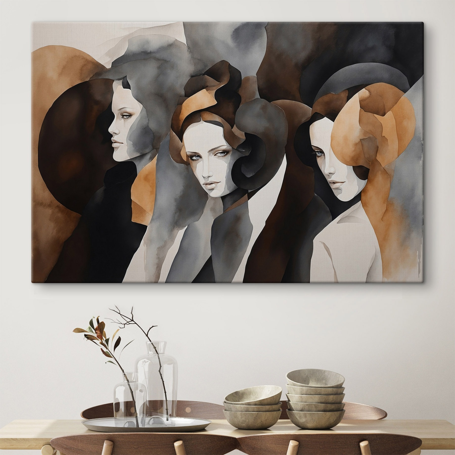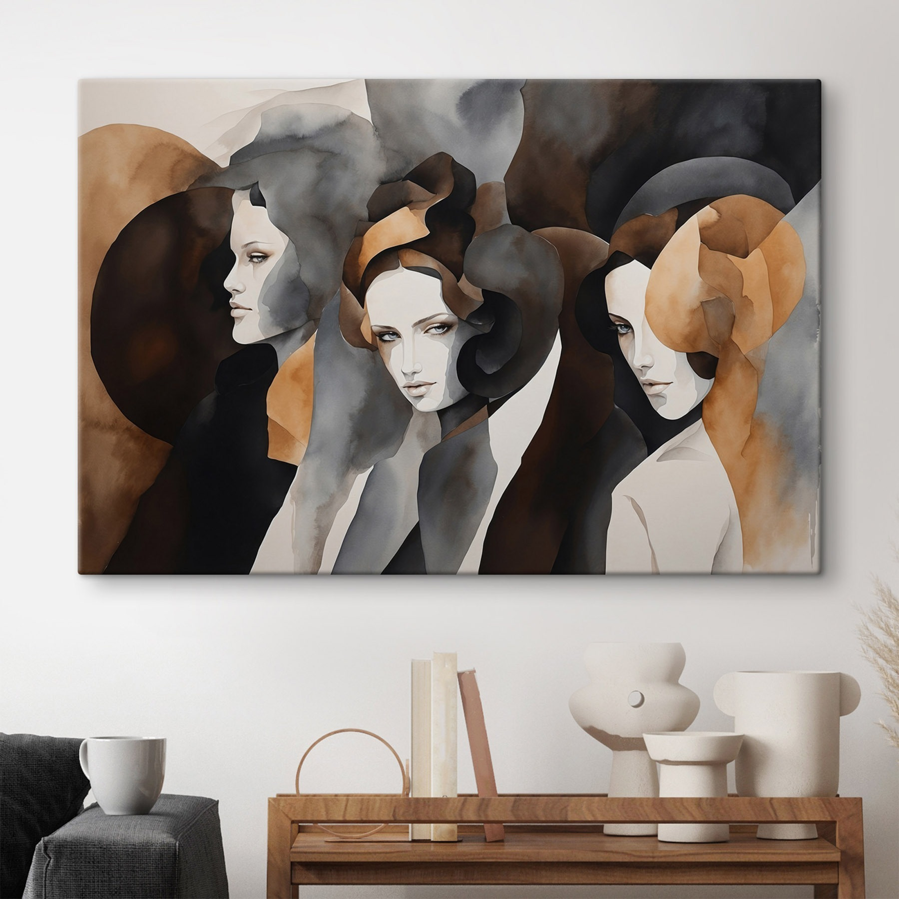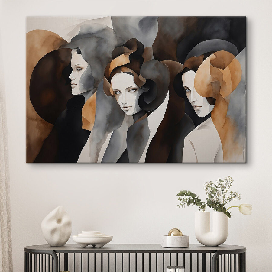 Wir stellen einen atemberaubenden Leinwanddruck vor, der eine Gruppe von Frauen zeigt, von denen jede ihre eigene Ausstrahlung durch eine schöne Farbmischung ausstrahlt. Dieses Kunstwerk ist wie ein gemütliches Gespräch bei einem Kaffee – nachdenklich, ausdrucksstark und ein wenig geheimnisvoll. Stellen Sie sich vor, es erhellt ein Wohnzimmer oder regt Gespräche in einem kreativen Arbeitsbereich an. Es zieht einen in seinen Bann und strahlt eine warme, einladende Atmosphäre aus, die jeden Blick zu einer kleinen Entdeckungsreise macht.